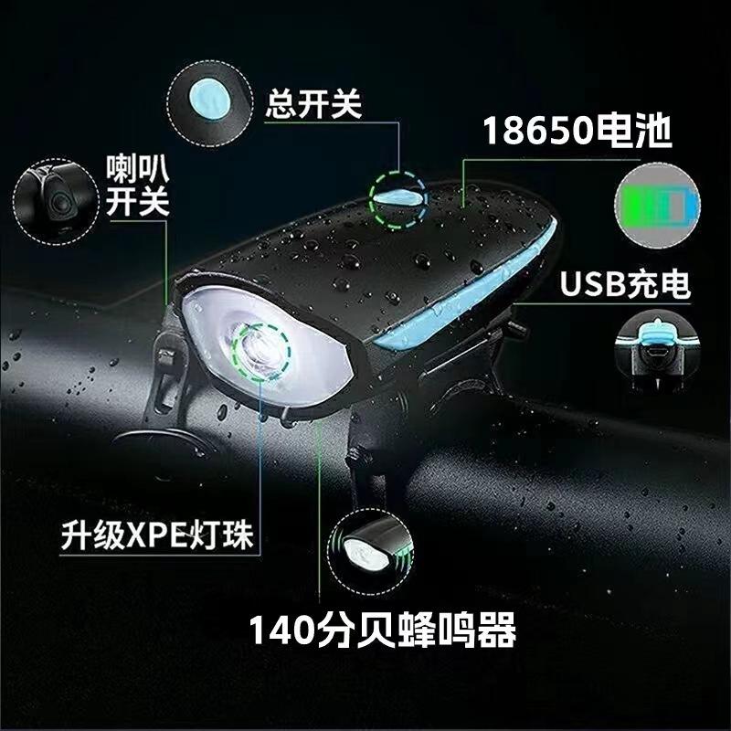Lámpara de bicicleta al por mayor de fábrica, equipo de conducción, faro de bicicleta de carretera de gran decibelio, lámpara de conducción nocturna, bocina de gran lúmenes