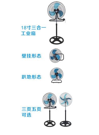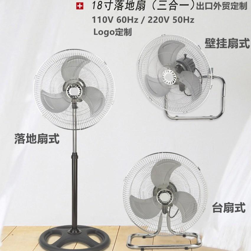 Ventilador de piso tres en uno transfronterizo de 18 pulgadas con cabezal vibratorio para el hogar, ventilador de pared vertical para el piso, ventilador industrial de alta potencia de fábrica