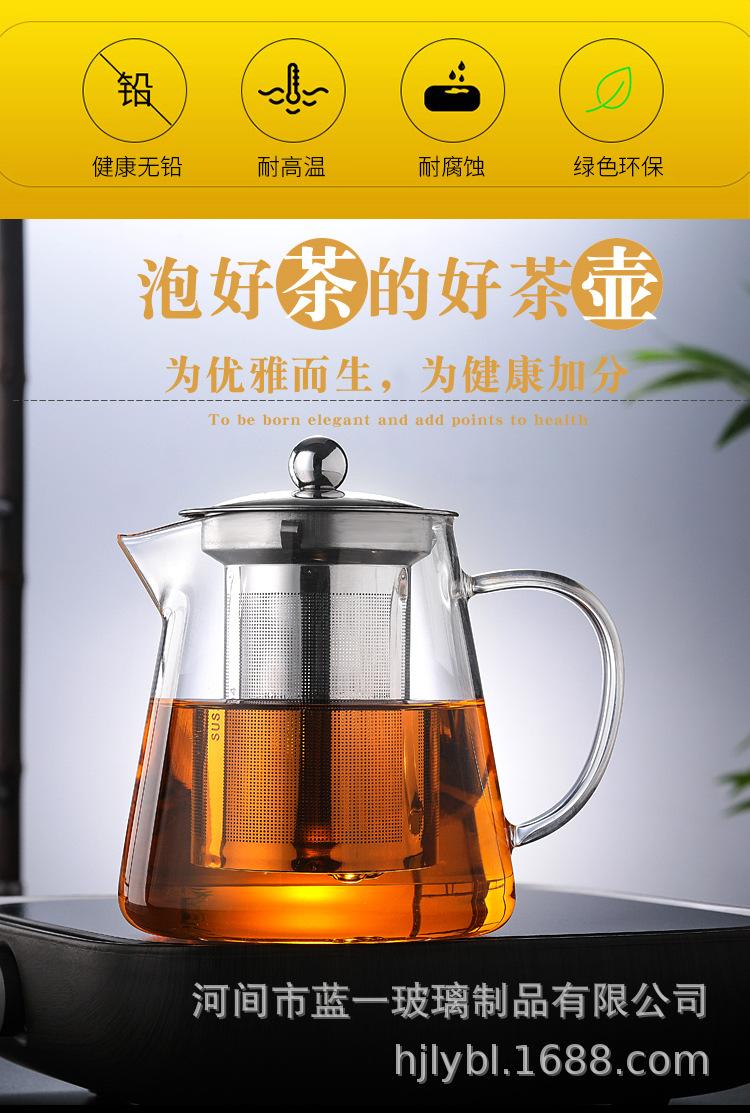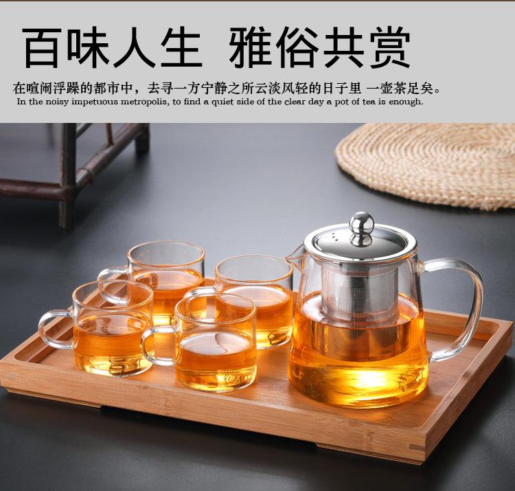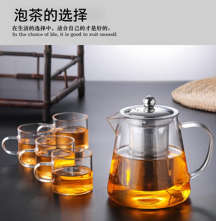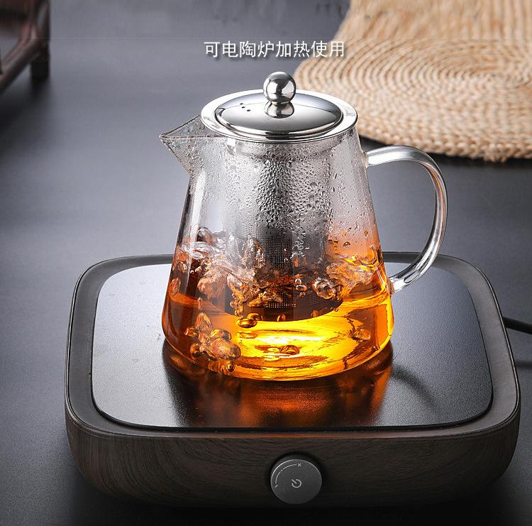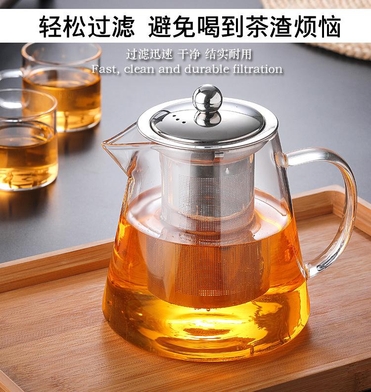 Tetera de vidrio de borosilicato resistente al calor, transparente, juego de té de kung fu, tetera de acero inoxidable con filtro y flores, venta al por mayor de fábrica