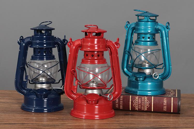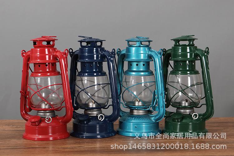 Lámpara de queroseno de hierro forjado nostálgica muebles para el hogar lámpara retro linterna para tienda de campaña al aire libre bar posada lámpara de aceite antigua lámpara de camping