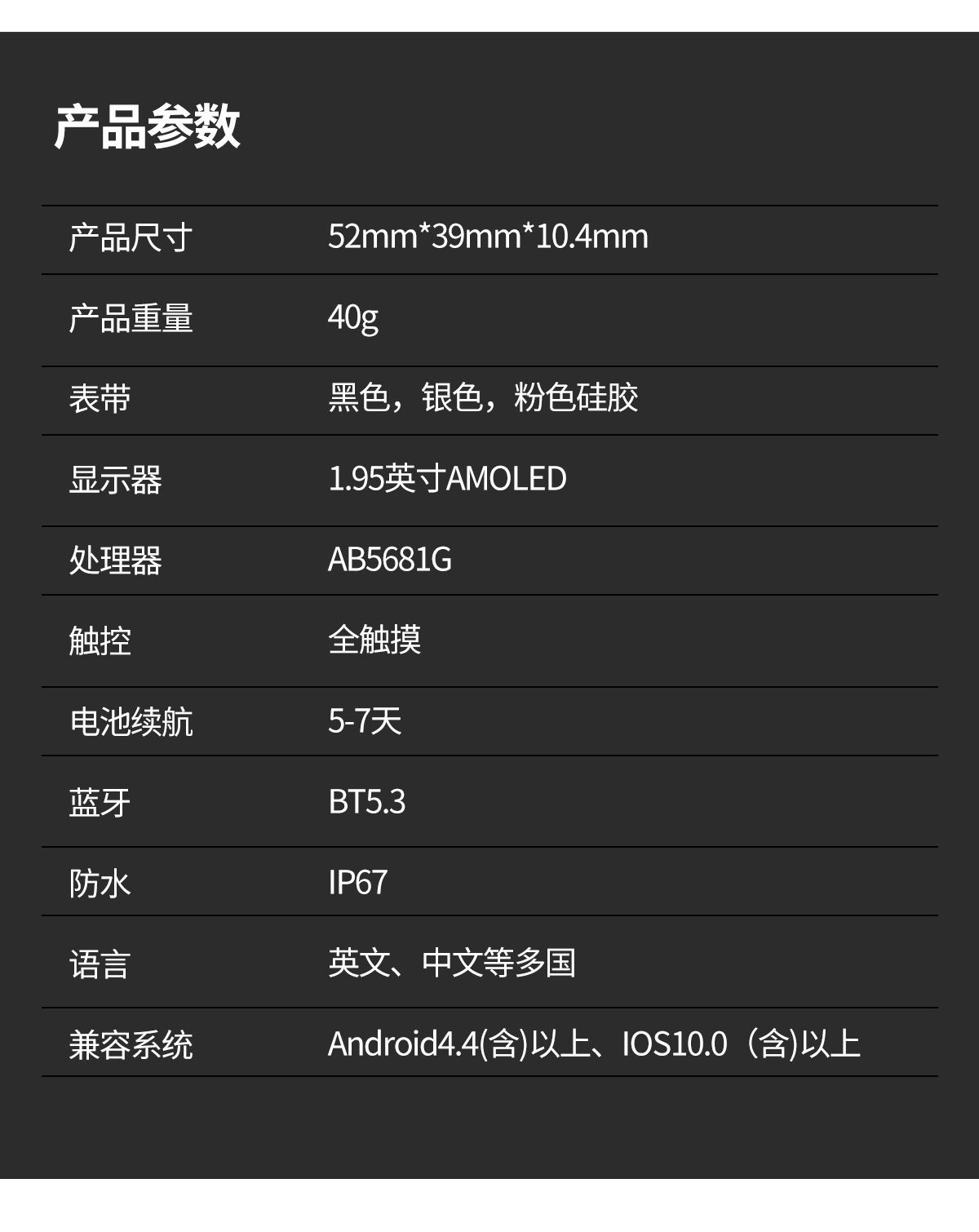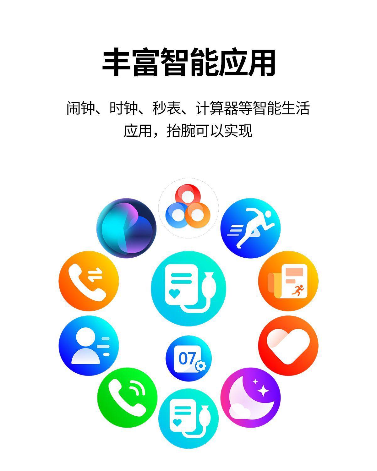 Funciones del software de la APP: descarga masiva de carátulas de reloj, notificaciones deportivas, notificaciones de juegos, carga de fotos, conteo de pasos, frecuencia cardíaca, sueño, sedentarismo, kilometraje, oxígeno en sangre, presión arterial, búsqueda de teléfono móvil, calorías, Bluetooth, información, notificaciones de WeChat, QQ y otros
