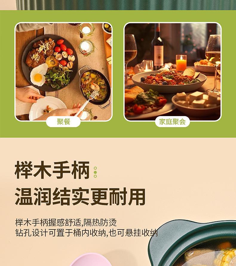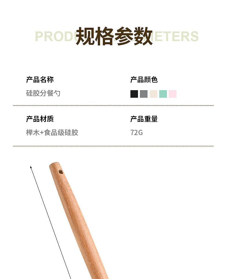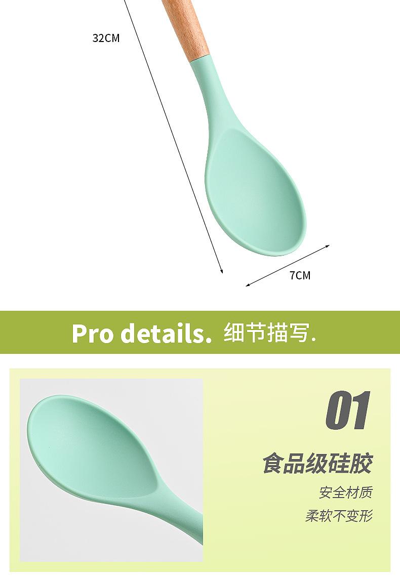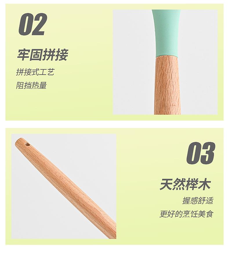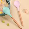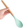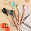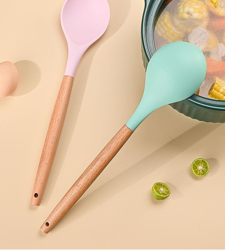 Cuchara de sopa de silicona con mango de madera en stock, utensilios de cocina para el hogar, resistente a altas temperaturas, para sartén antiadherente, densa, cuchara para porciones más divididas, utensilios de cocina