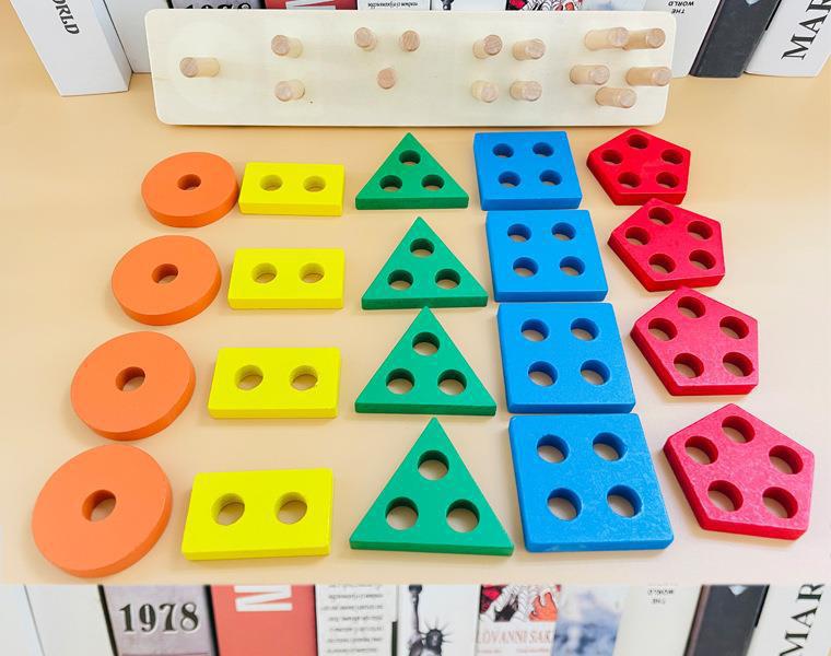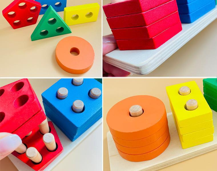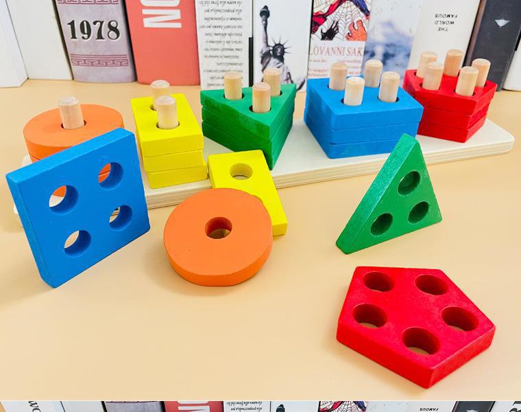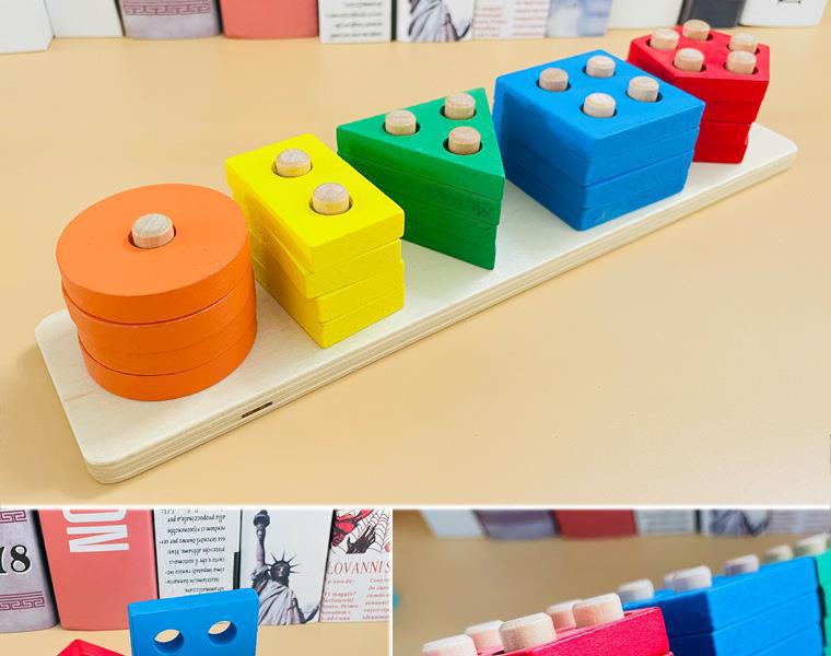 Desarrollo de la Inteligencia de Emparejamiento de Formas Geométricas para Niños Coloridos Cinco Juegos de Bloques Rectangulares Material Didáctico Montessori Juguetes de Madera 3