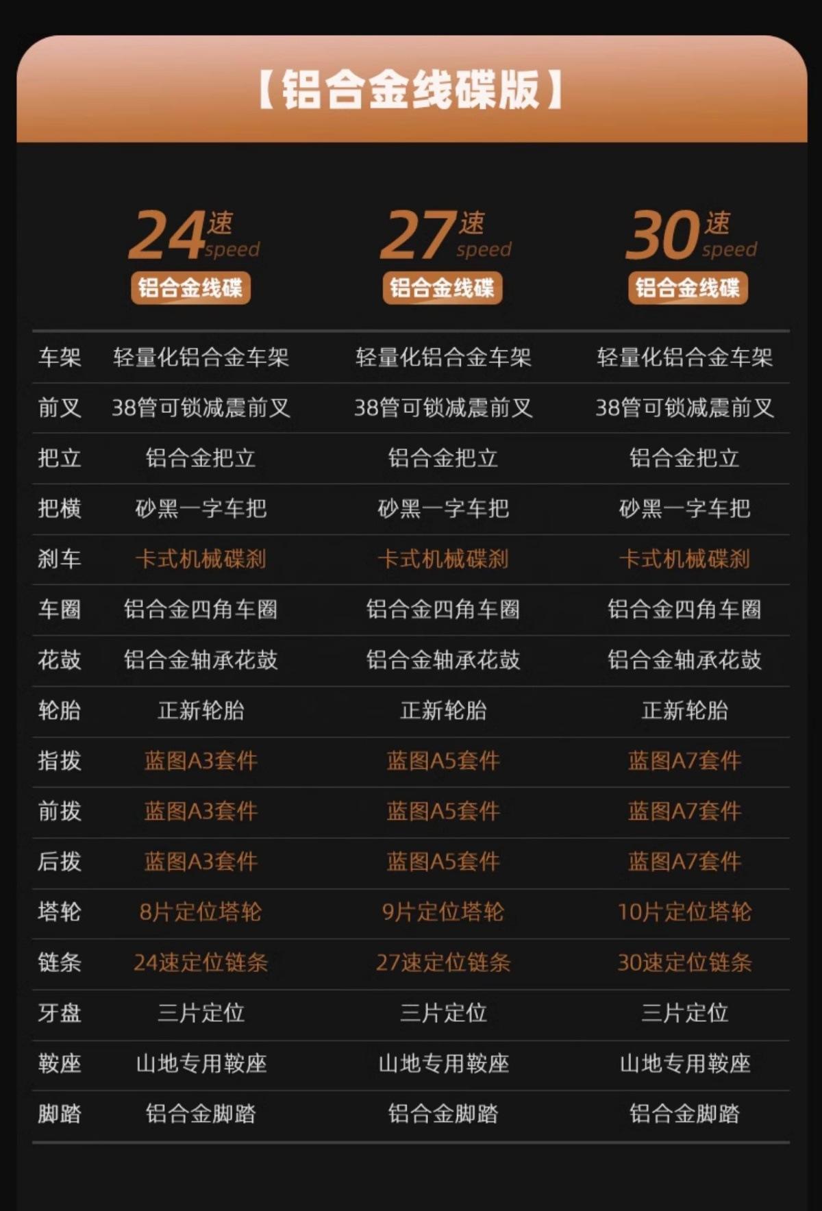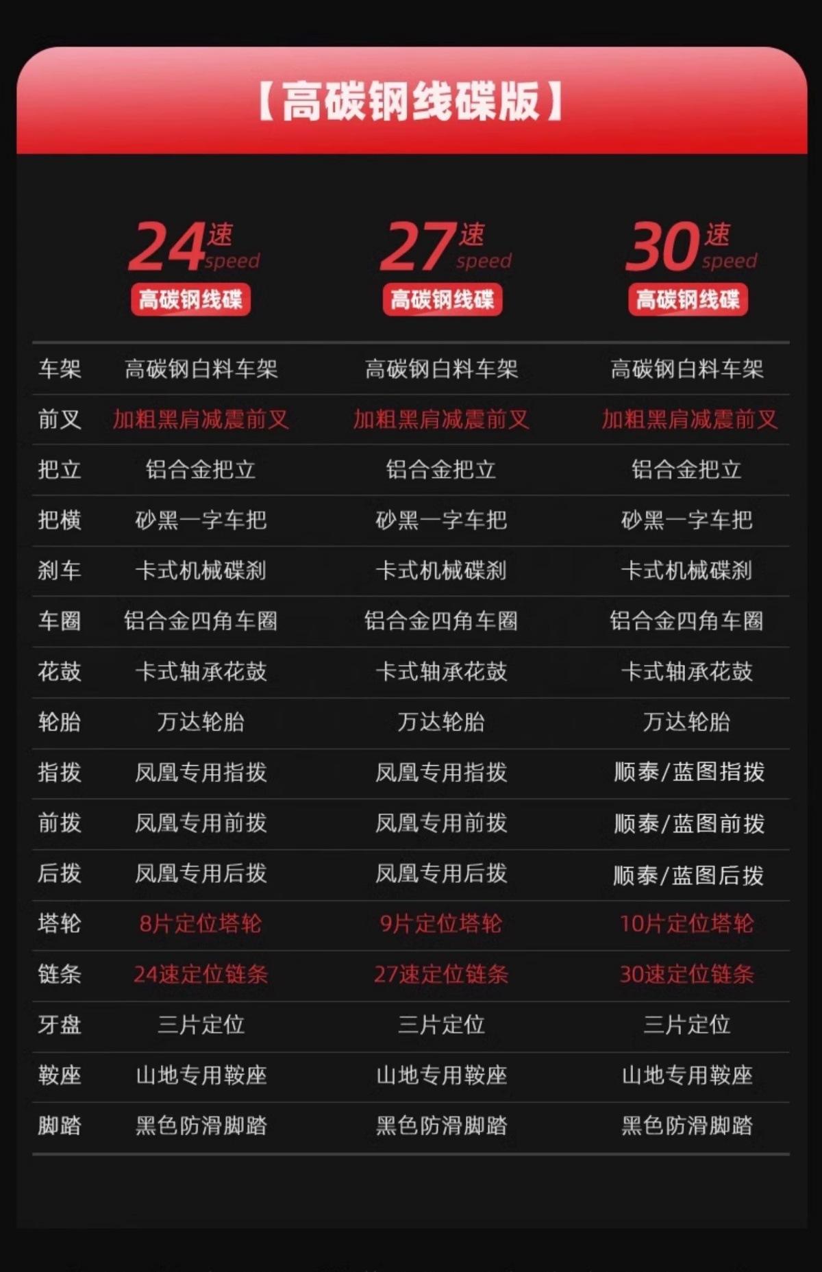 24inch +24 speed, 26inch +24 speed, 27.5inch +24 speed, 24inch +27 speed, 26inch +27 speed, 27.5inch +27 speed...