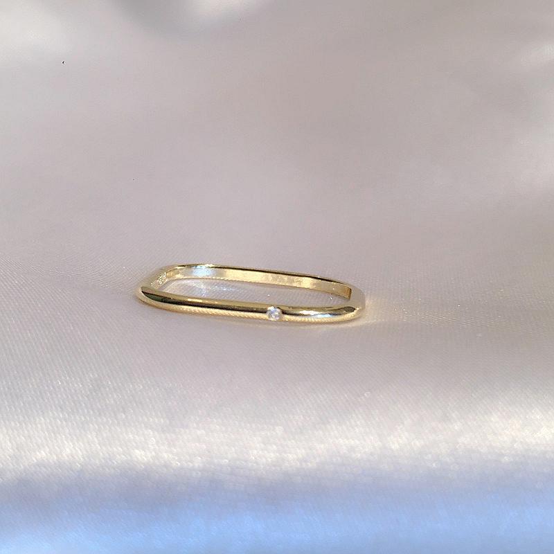 Anillo cuadrado pequeño, anillo cuadrado, personalidad de moda femenina, nuevo anillo de dedo índice de circón, anillo cuadrado de diamante, anillo de viento frío, anillo abierto liso