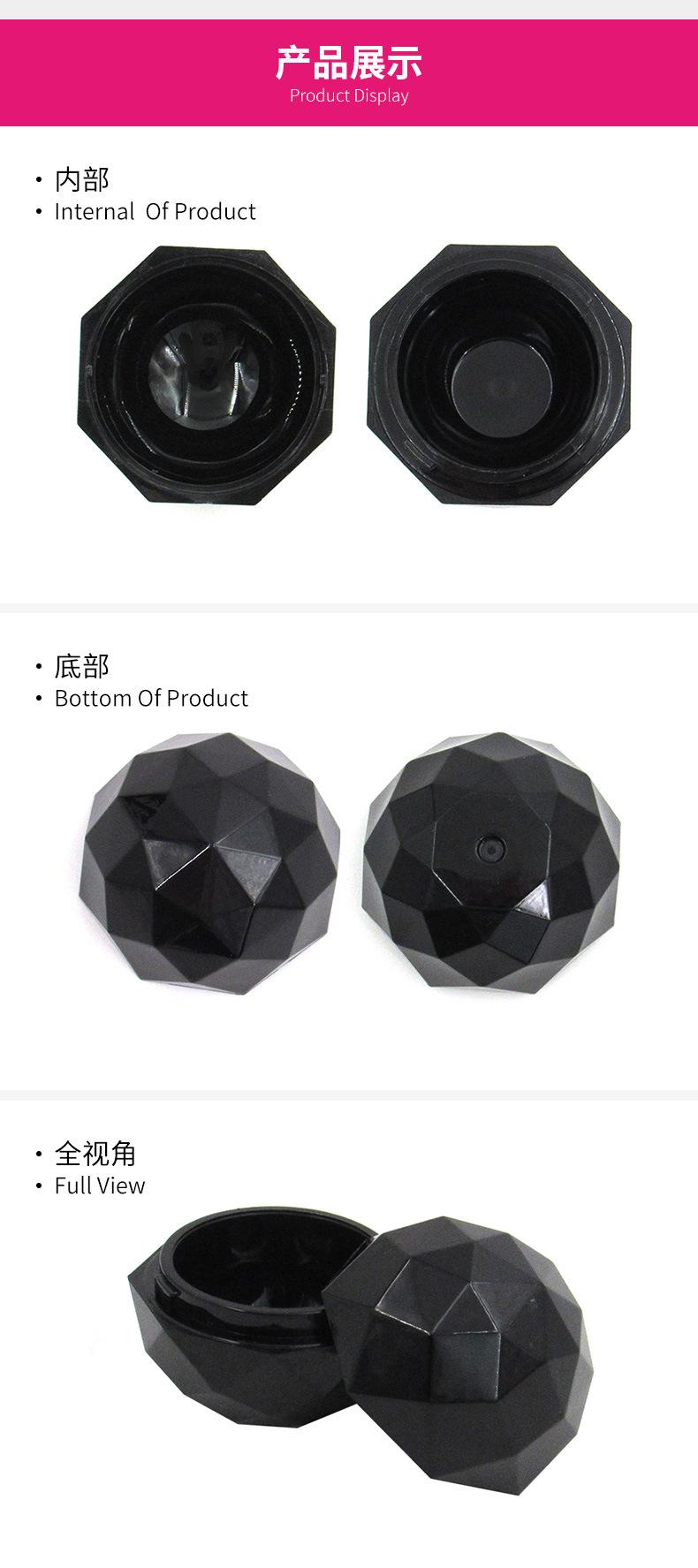 Bálsamo labial cosmético esférico geométrico negro, material de embalaje, lápiz labial de plástico portátil redondo, brillo de labios, caja vacía