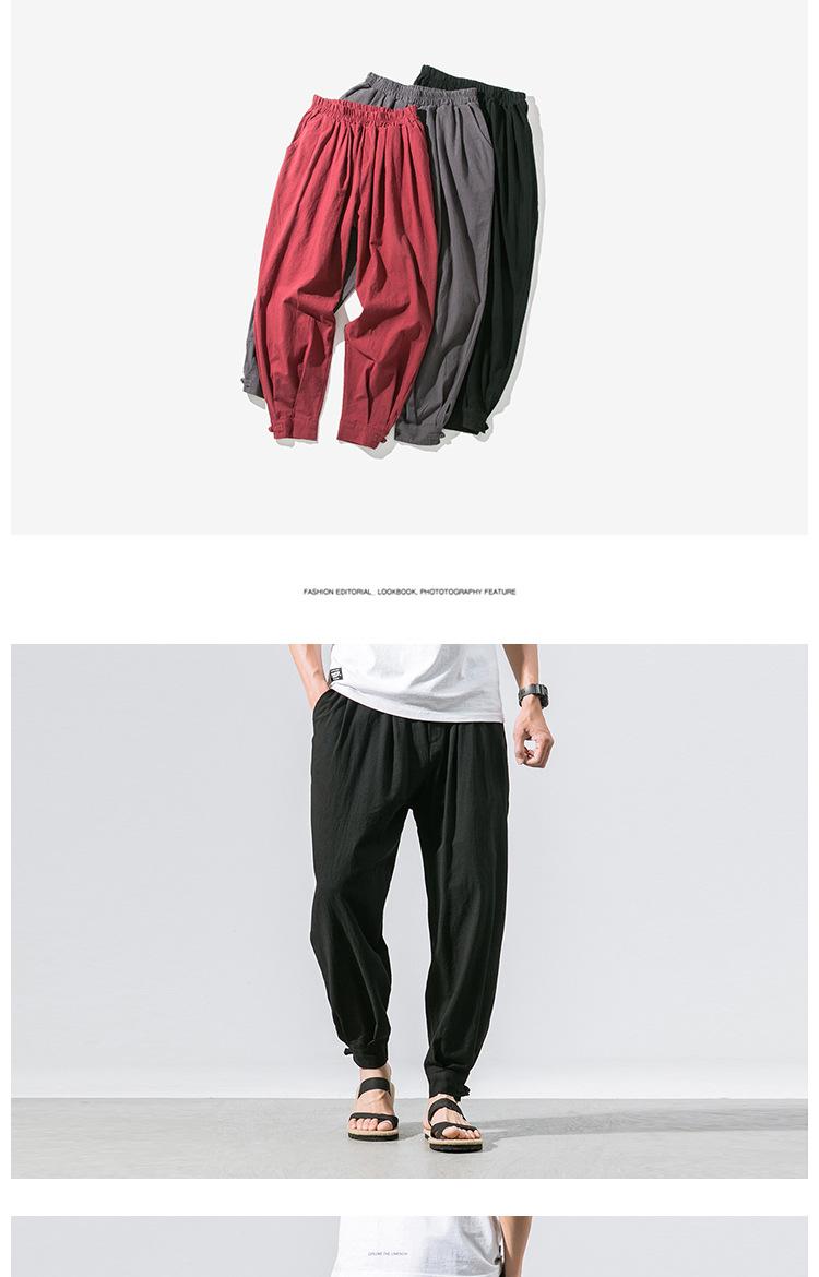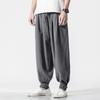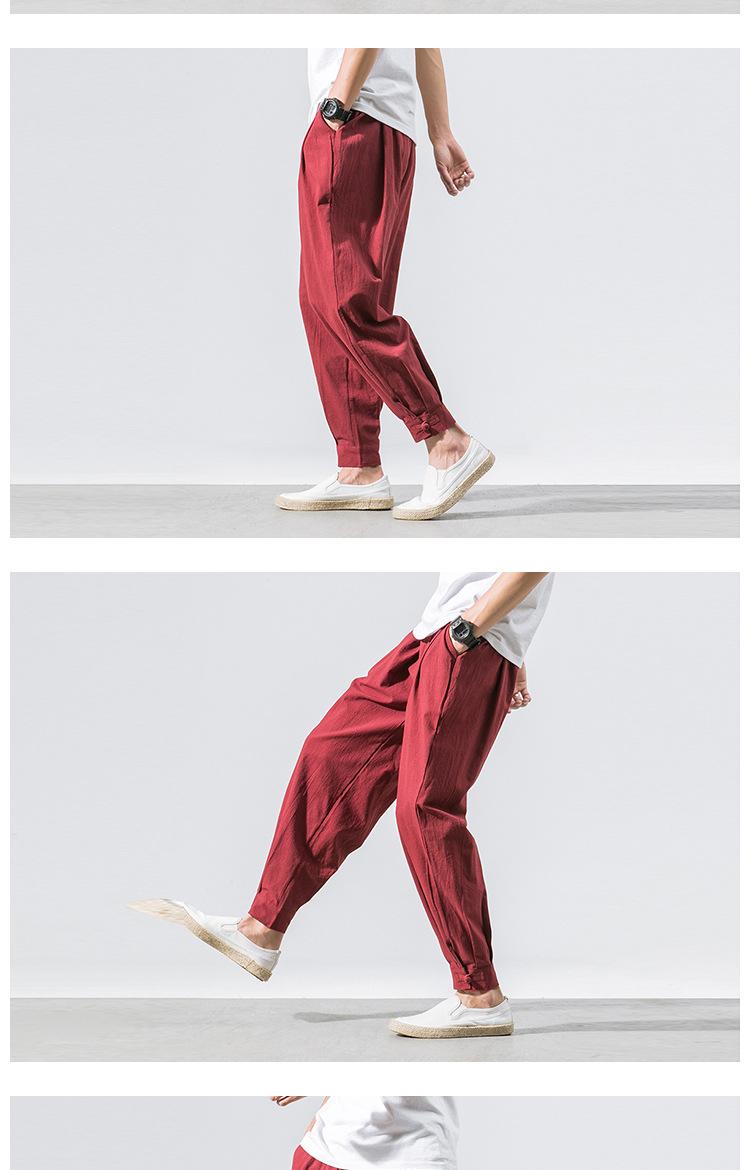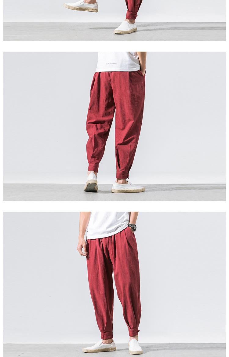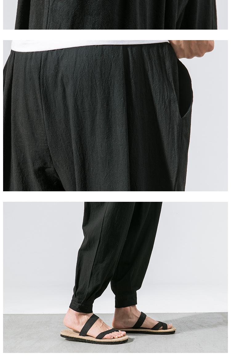 Verano nuevo estilo chino pantalones de lino de algodón para hombre hebilla pantalones tobilleros pantalones harén bombachos talla grande pantalones casuales sueltos moda