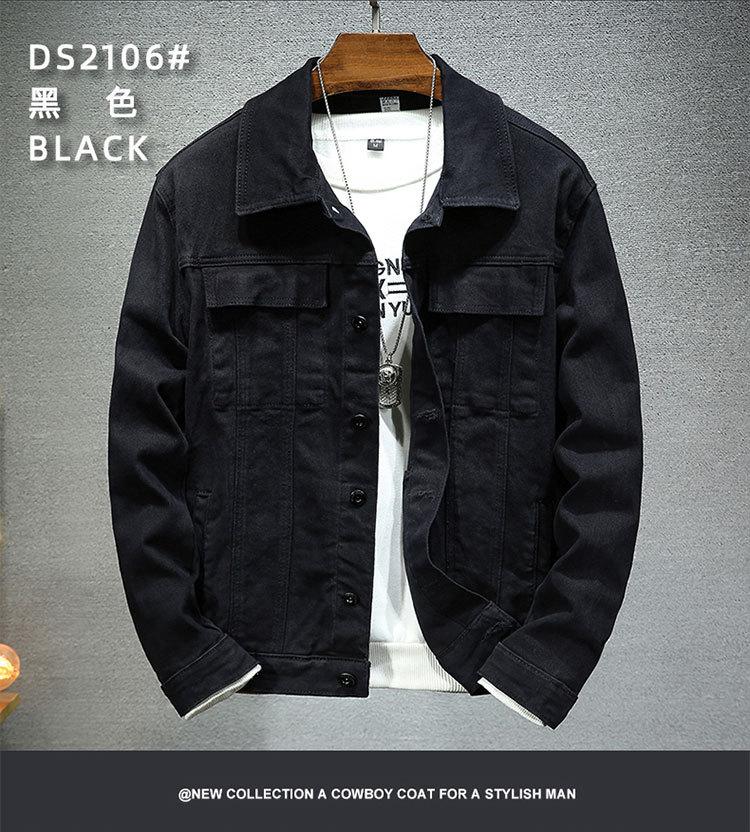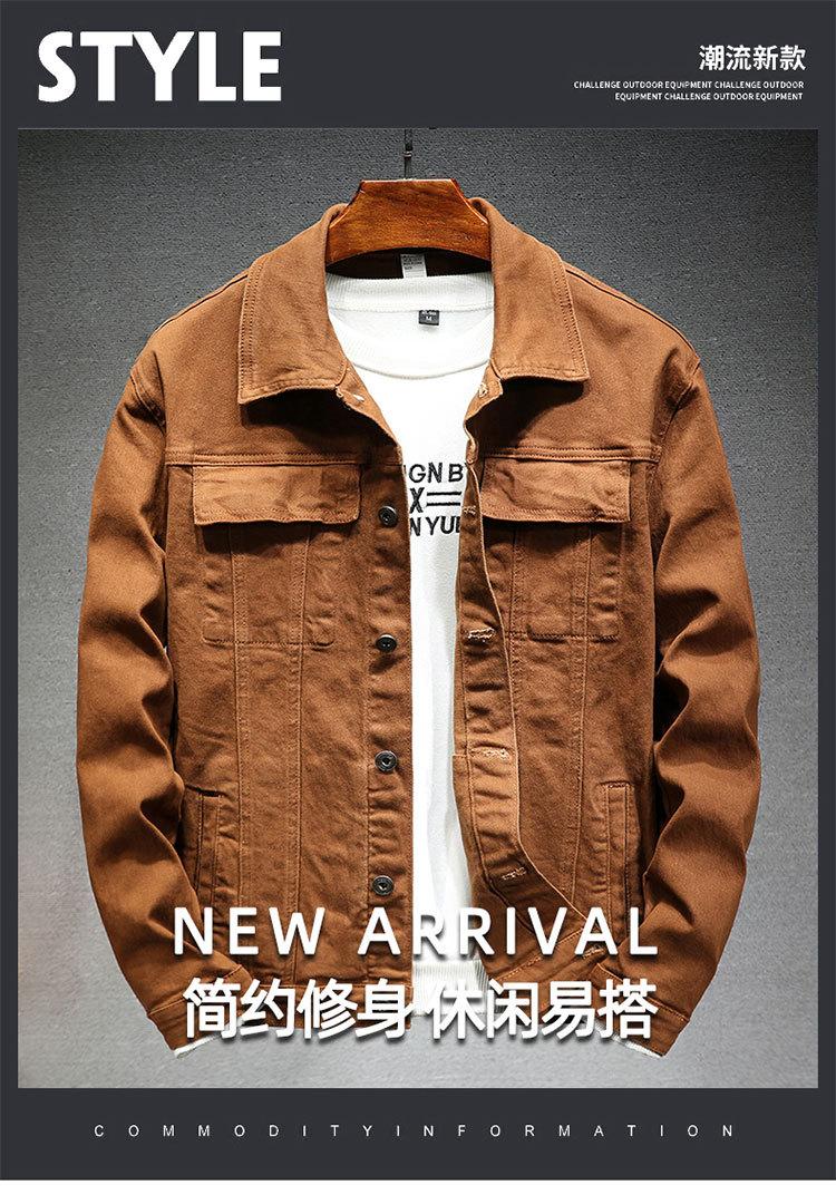 Chaqueta vaquera ajustada y elástica para hombre, primavera 2023, nueva chaqueta para hombre, color liso, sencilla, marca de moda superior para hombre.