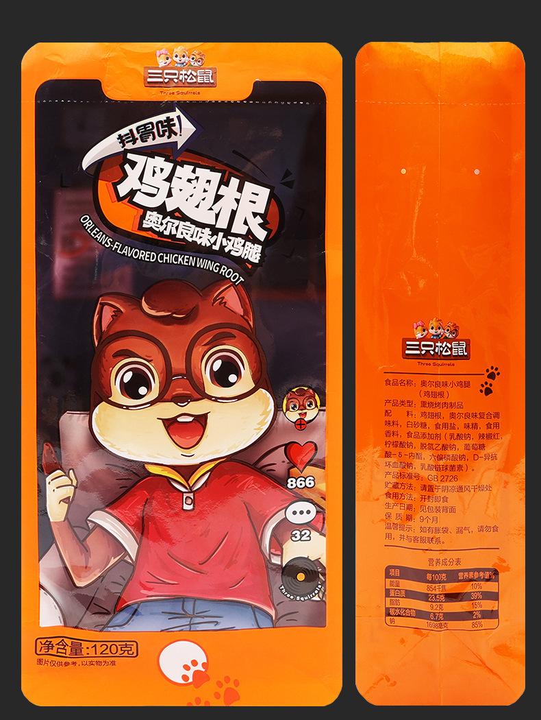 Compra Una generación de tres ardillas, ala de pollo, raíz, patas de pollo con sabor a Orleans, bolsas de 120 g, bocadillos, comida cocinada especial al por mayor en Joom.pro