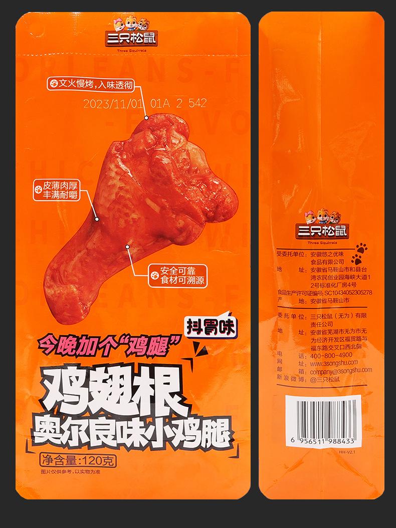 Three Squirrels Orleans Chicken Legs 120gX1 Bag, Three Squirrels Orleans Chicken Legs 120gX2 Bag, Three Squirr...