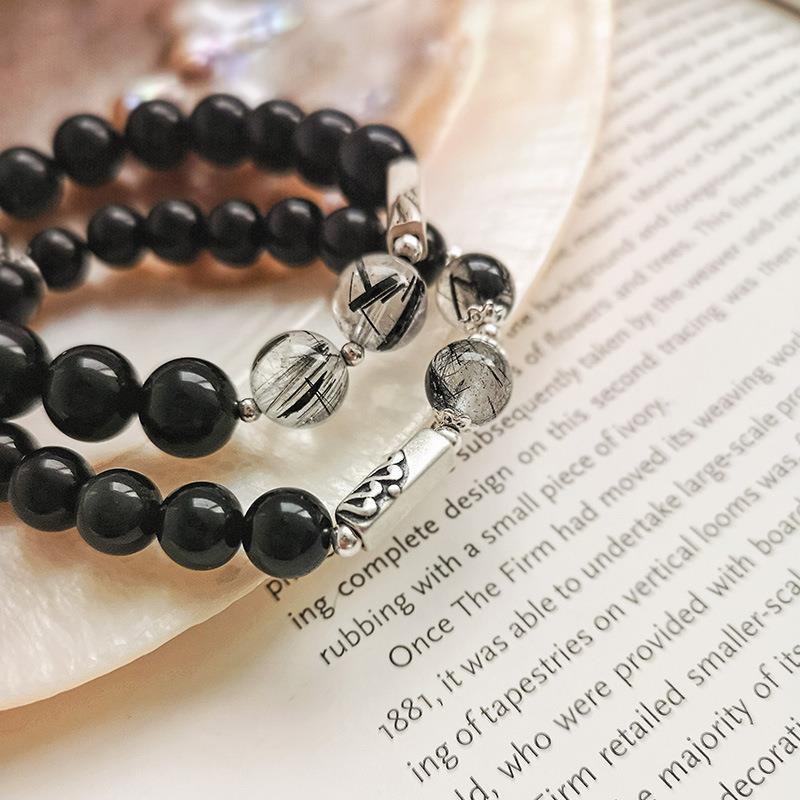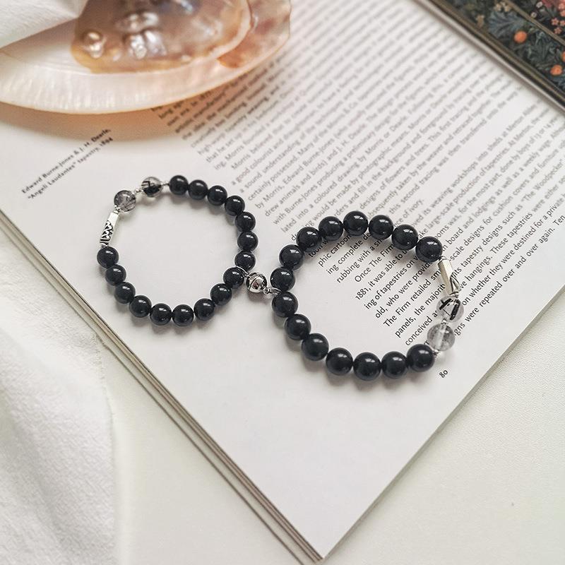 Pulsera de Pareja de Cristal Obsidiana Par de Vibración Inductiva Pulsera de Cristal Cabello Negro Regalo
