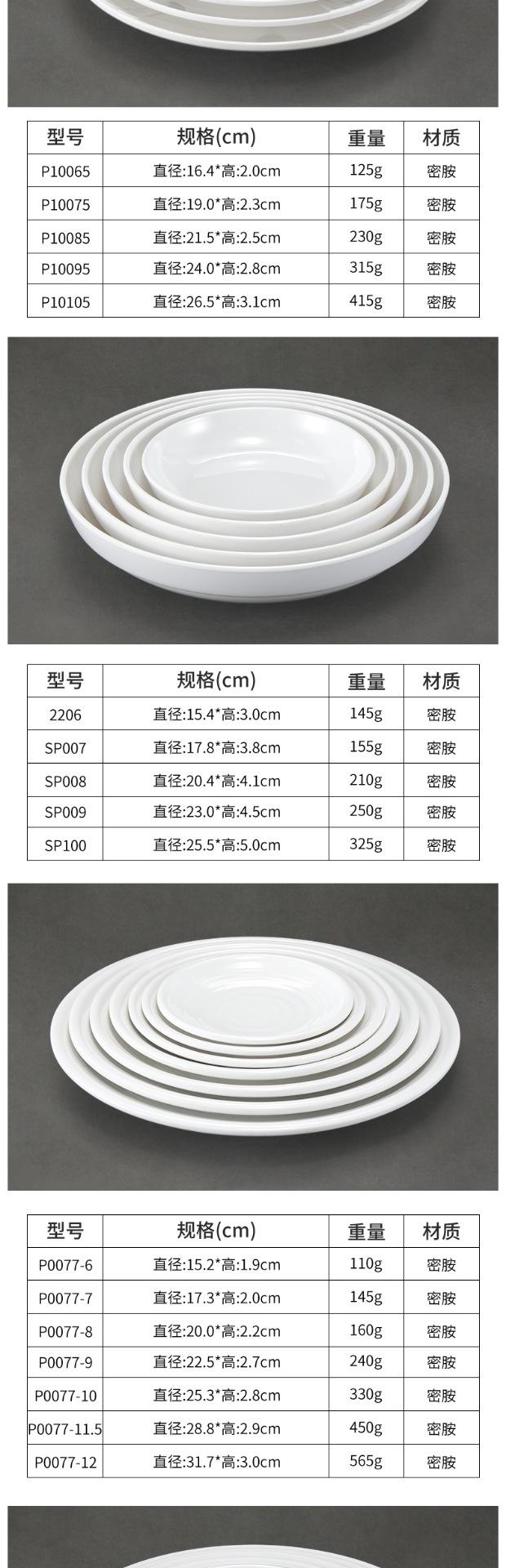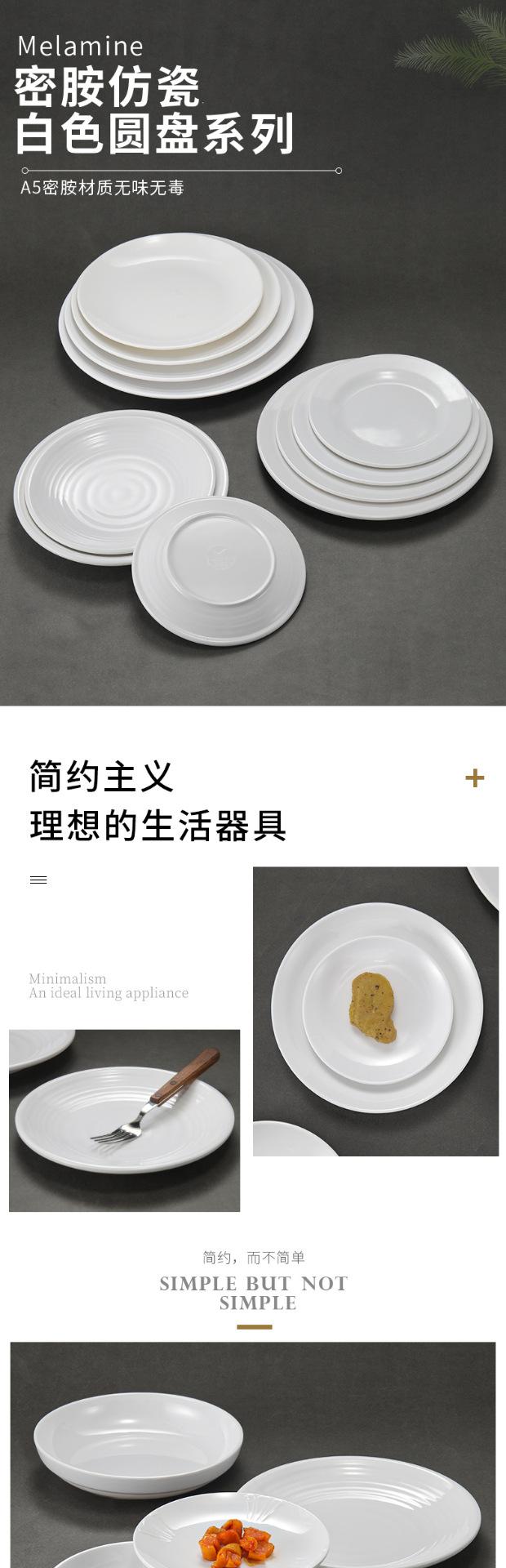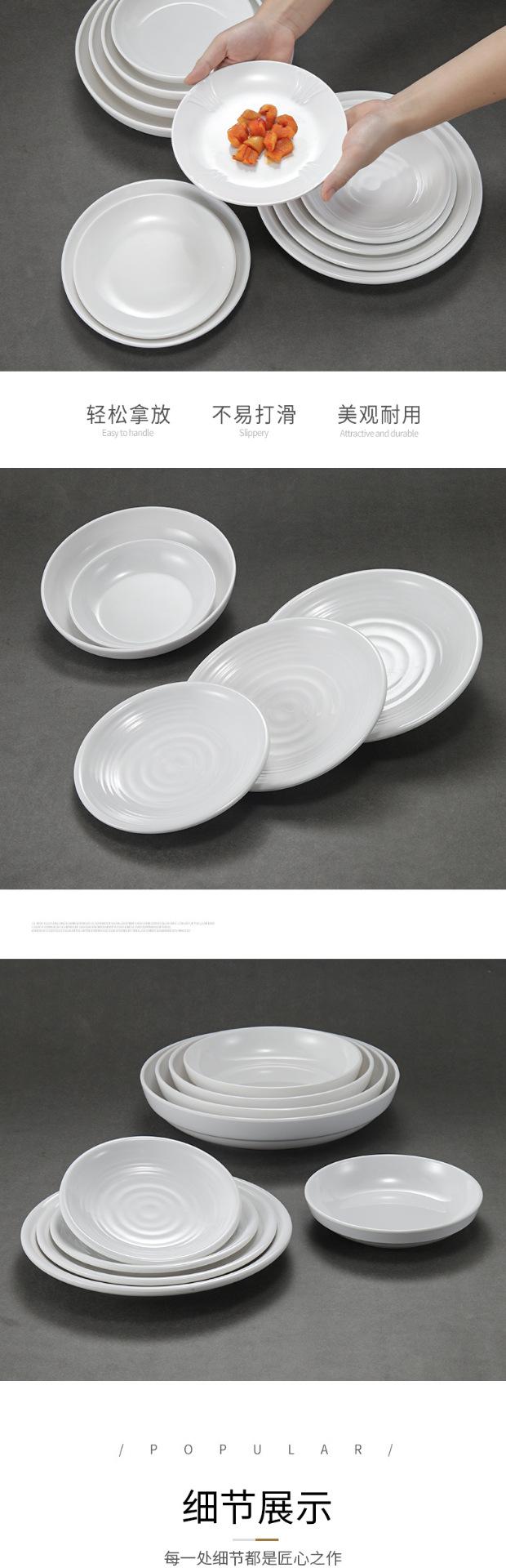 Plato Hondo Blanco Redondo Hotel Cocina Plato Redondo Plato de Plástico Plato de Hueso Plato de Autoservicio Comida Rápida Plato Comercial de Melamina Vajilla