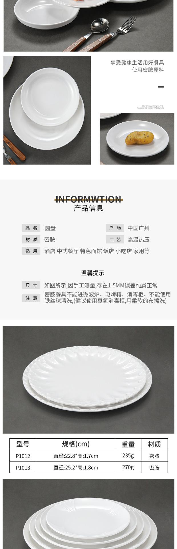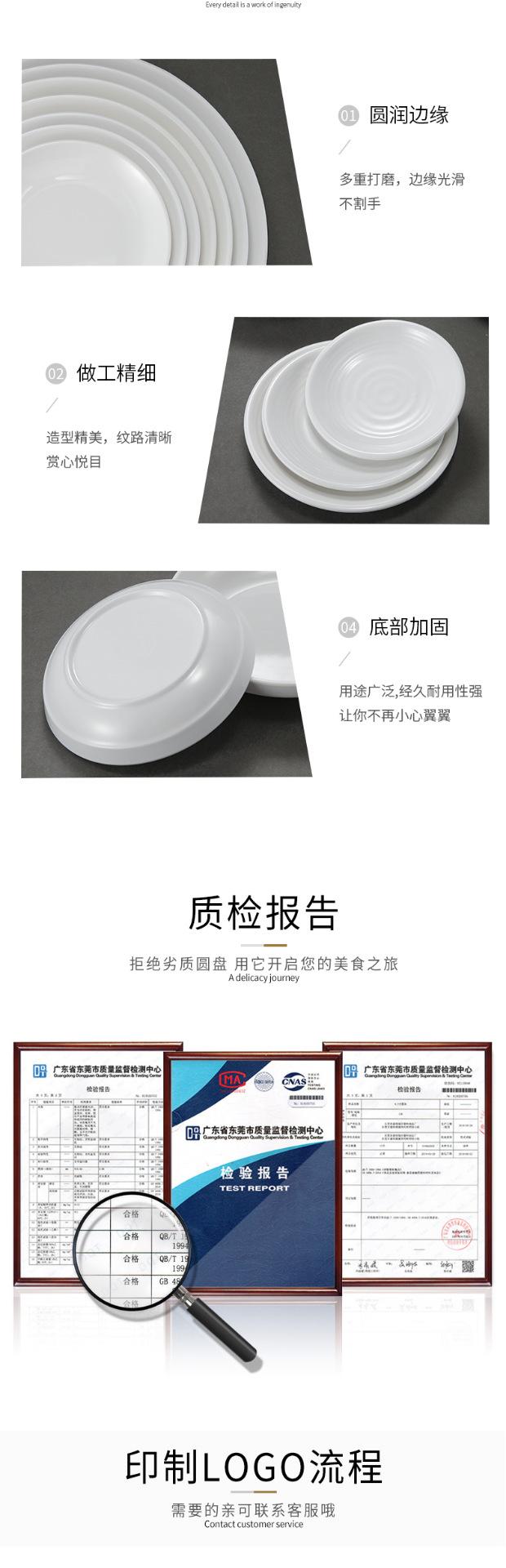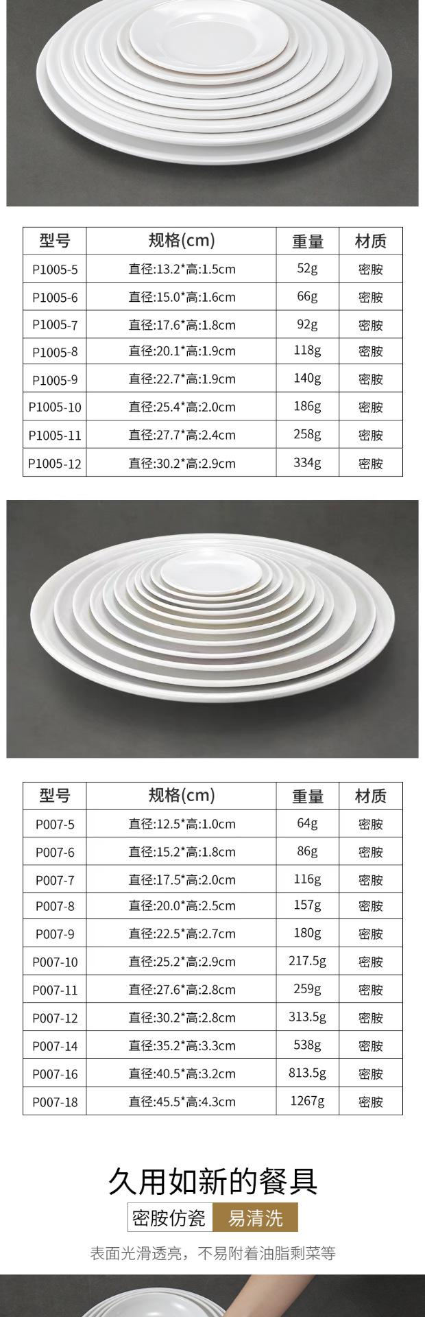 Plato Hondo Blanco Redondo Hotel Cocina Plato Redondo Plato de Plástico Plato de Hueso Plato de Autoservicio Comida Rápida Plato Comercial de Melamina Vajilla