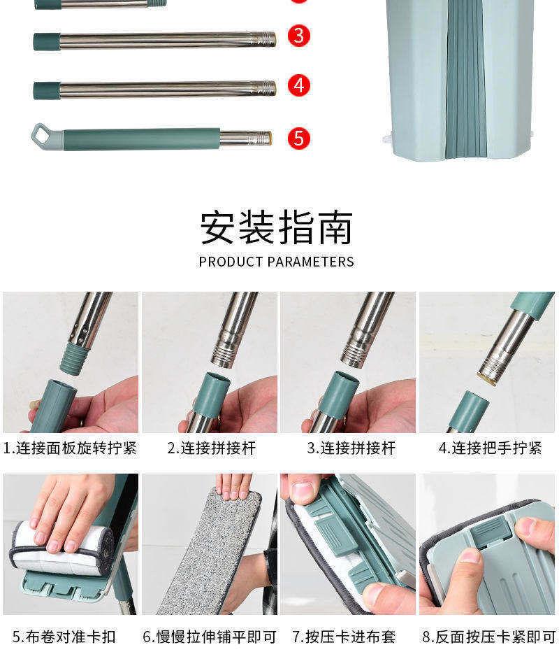 Compra Trapeador manos libres Lazy Trapeador plano Trapeador seco y húmedo Trapeador de doble propósito Trapeador Trapeador Artefacto Trapeador Cubo R al por mayor en Joom.pro