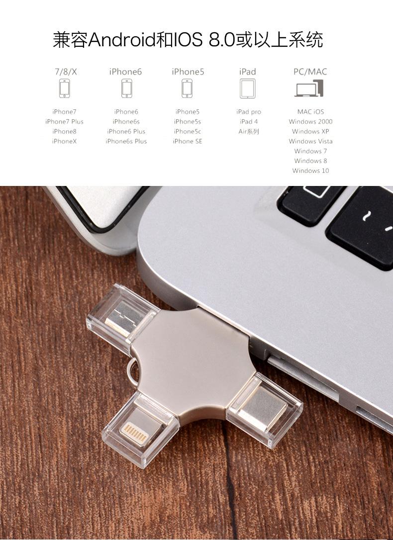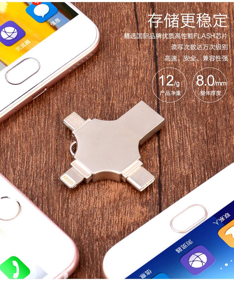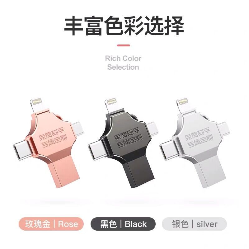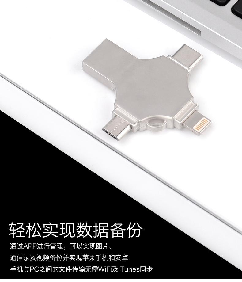 Disco U de metal para teléfono móvil de 16 GB para Apple Android tipo C 4 en 1 USB de alta velocidad y gran capacidad de 128 GB