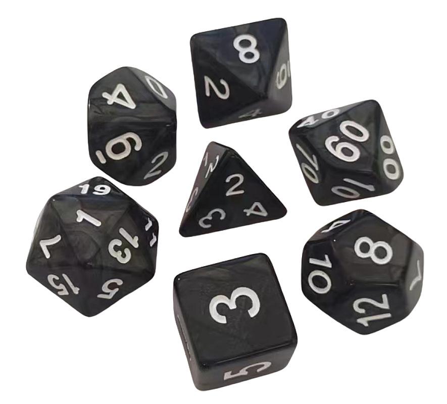 Dados acrílicos para juegos de mesa con patrón de perla monocromático de 7 granos, dados para correr DND de dos colores con patrón de piedra Dali, suministro directo de fábrica