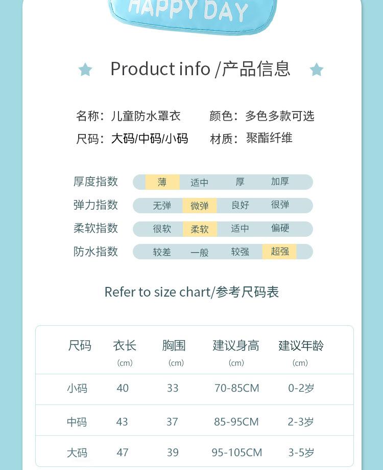 Small size (0-1 years), Medium size (2-3 years old), plus size (3-5 years)