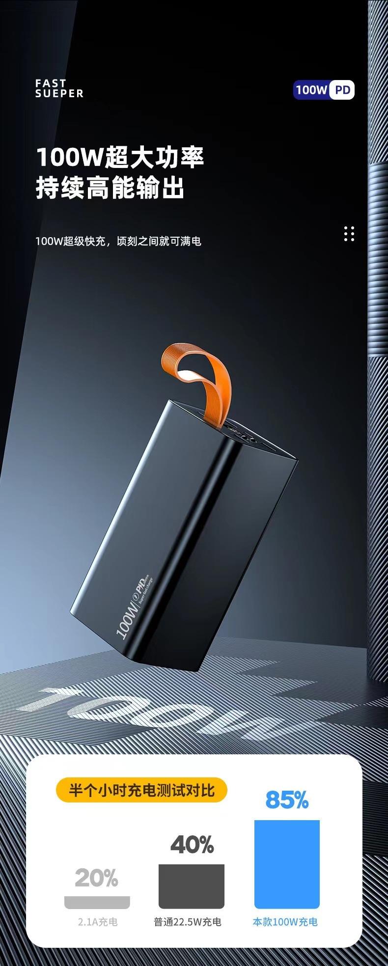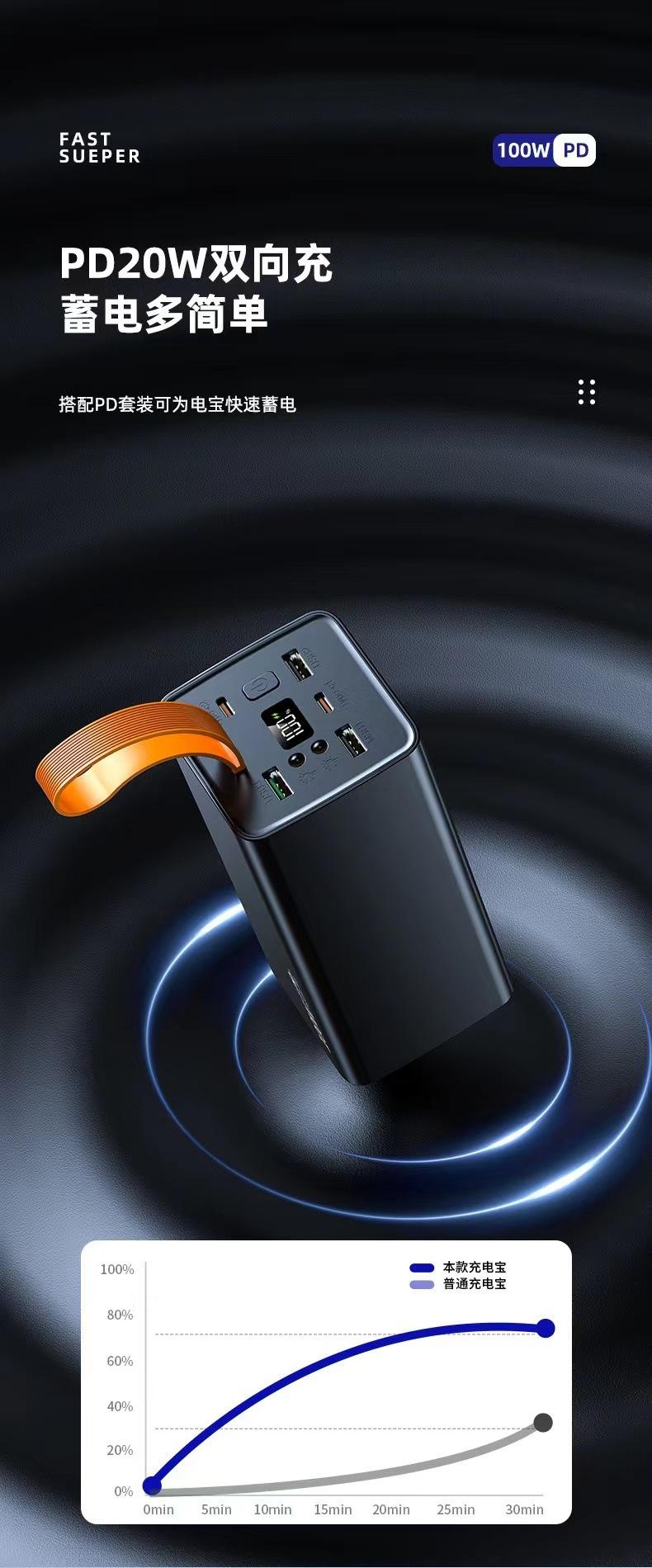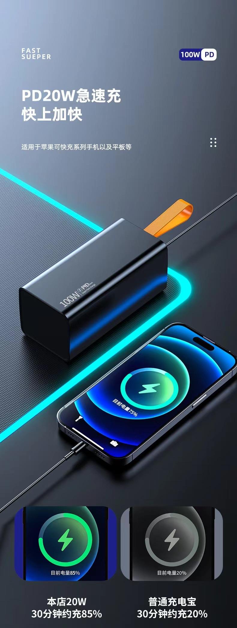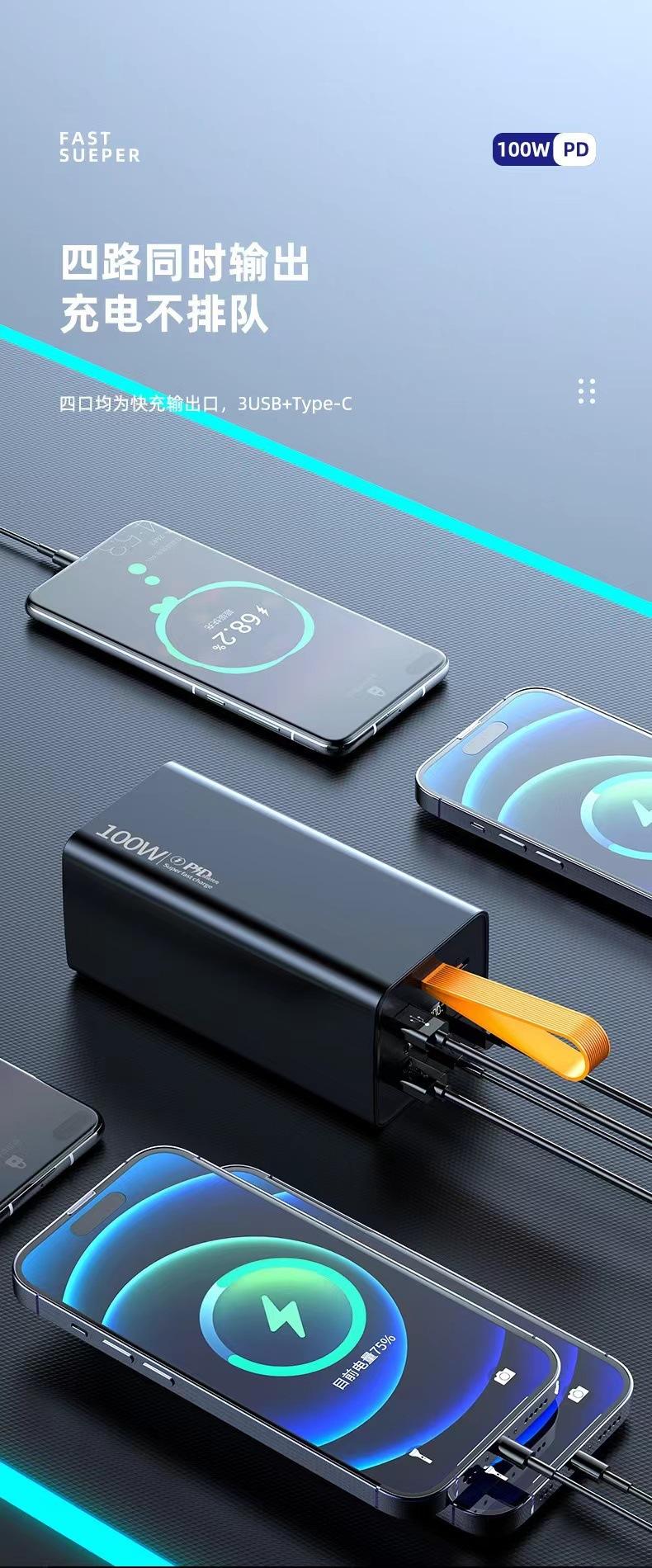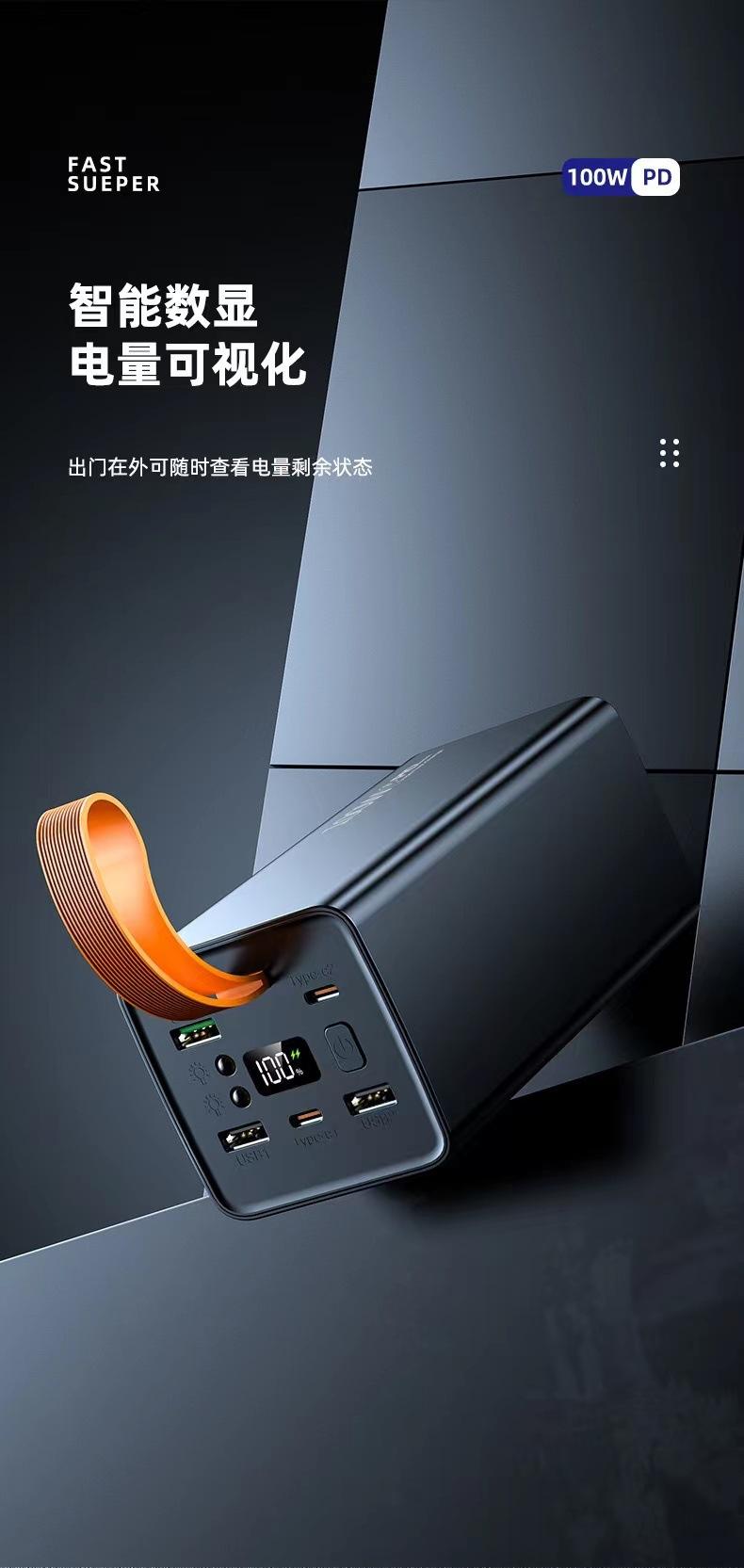 Cargador portátil PD100W de carga ultrarrápida transfronterizo con pantalla digital de gran capacidad de 60000 mA y tesoro de carga