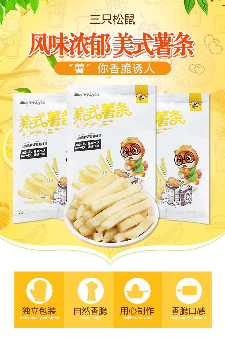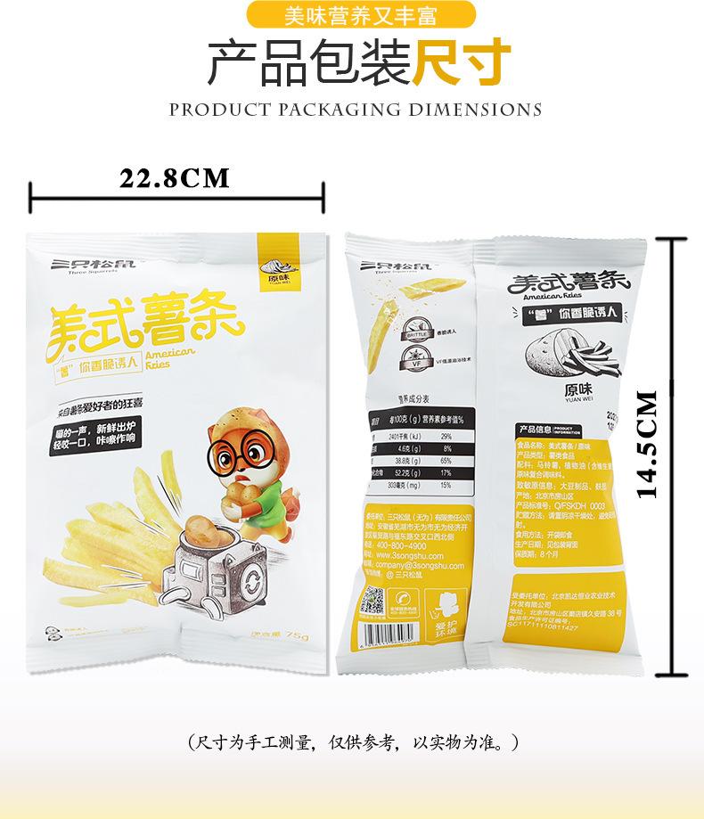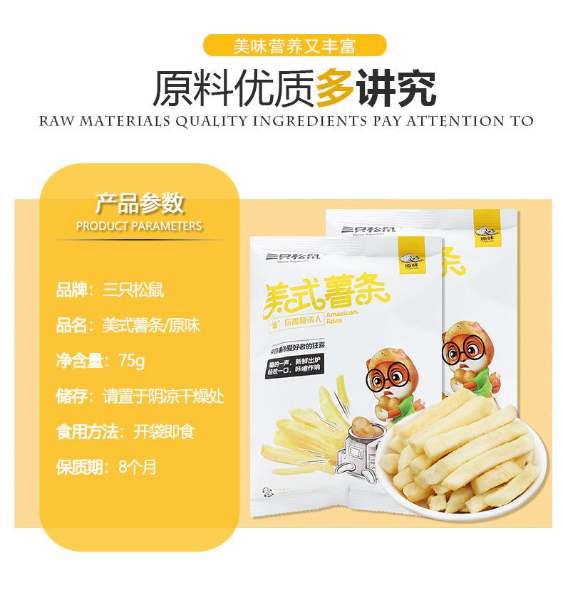 Three squirrels American fries 75g * 1 bag, Three squirrels American fries 75g * 2 bags, Three squirrels Ameri...