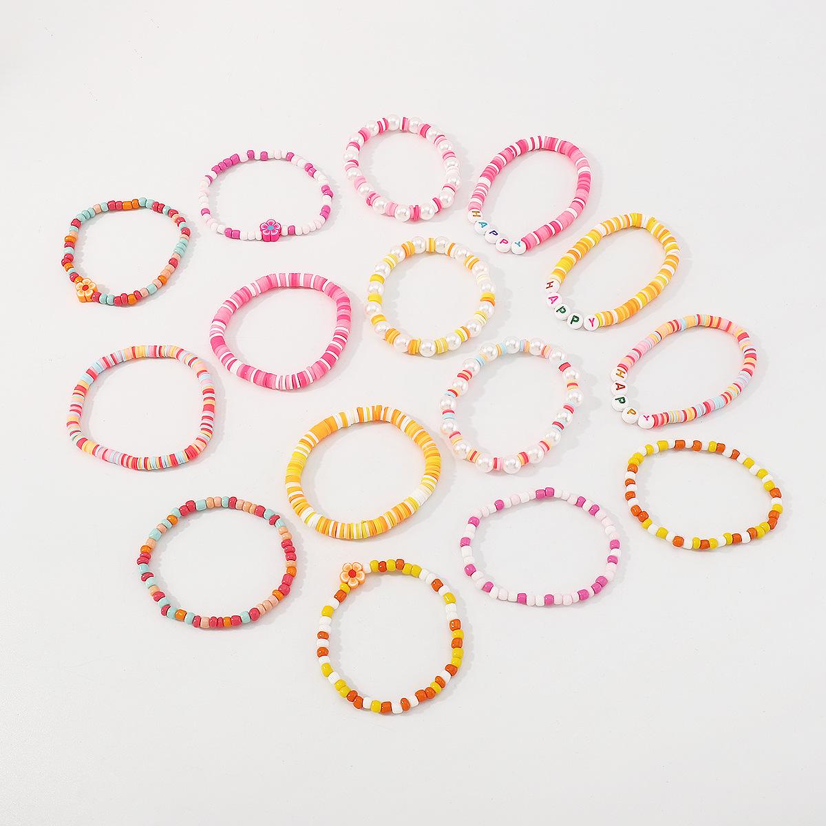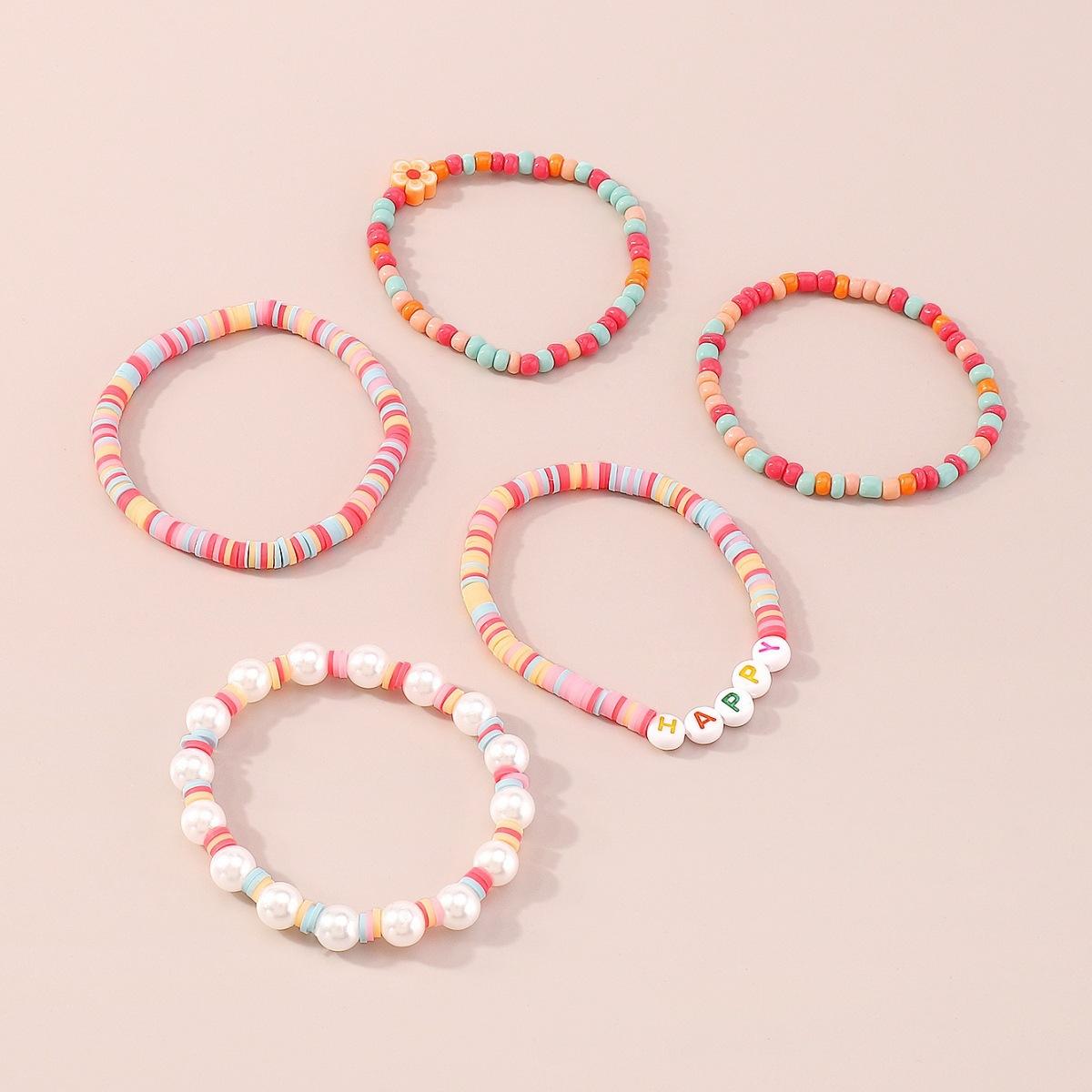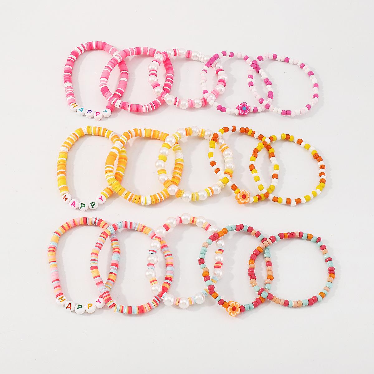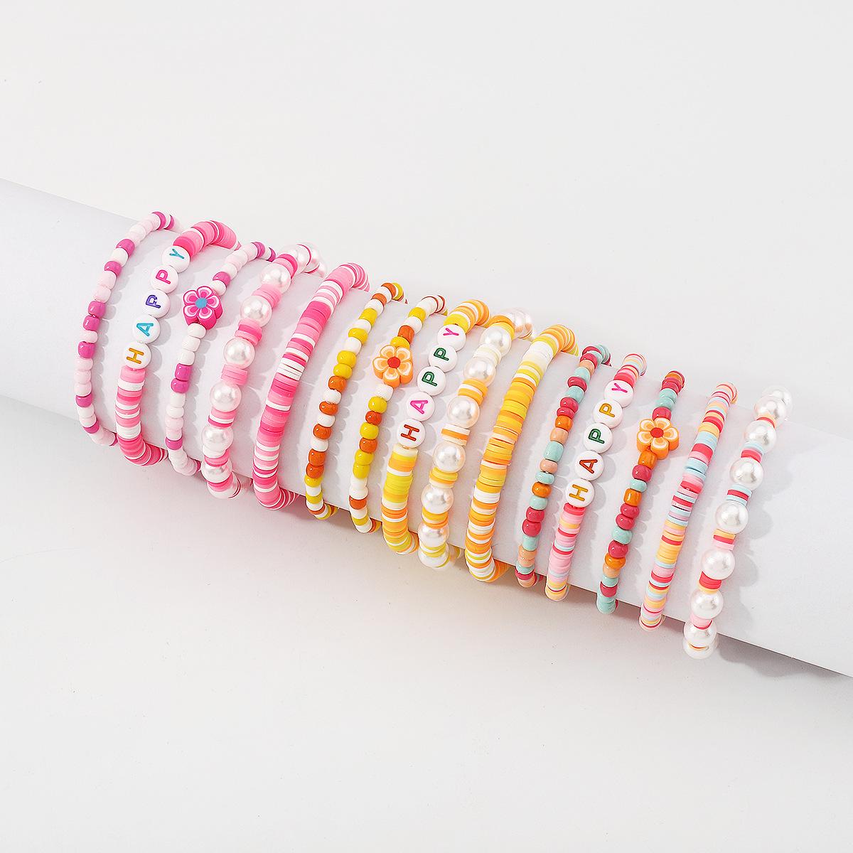 Pulsera de cuentas con letras de cerámica blanda transfronteriza europea y americana, moda personalidad, colorido, traje de pulsera de cuentas de cerámica blanda, venta al por mayor