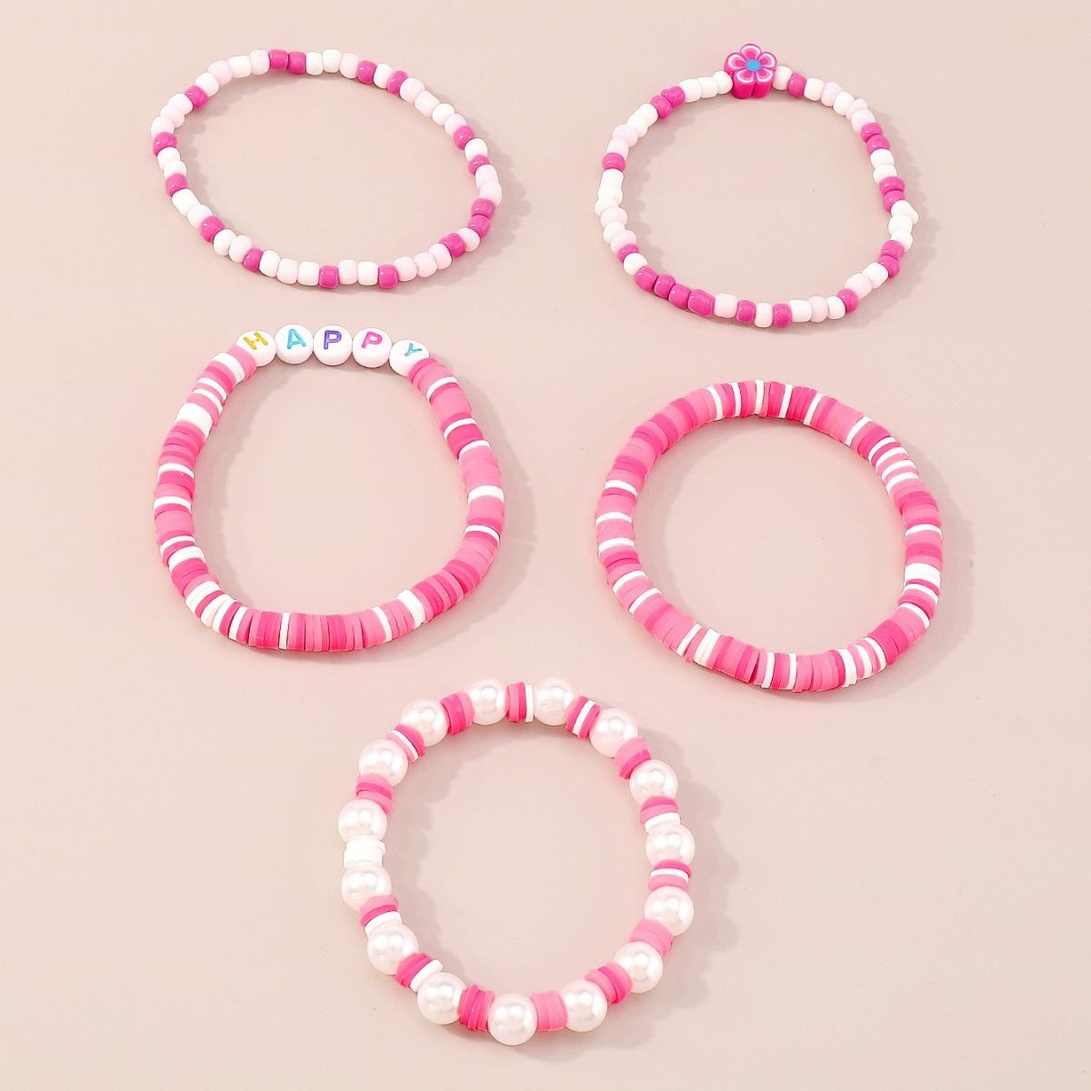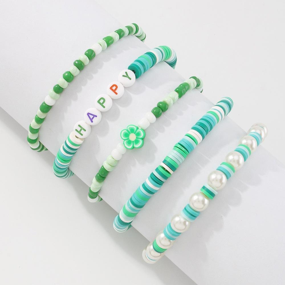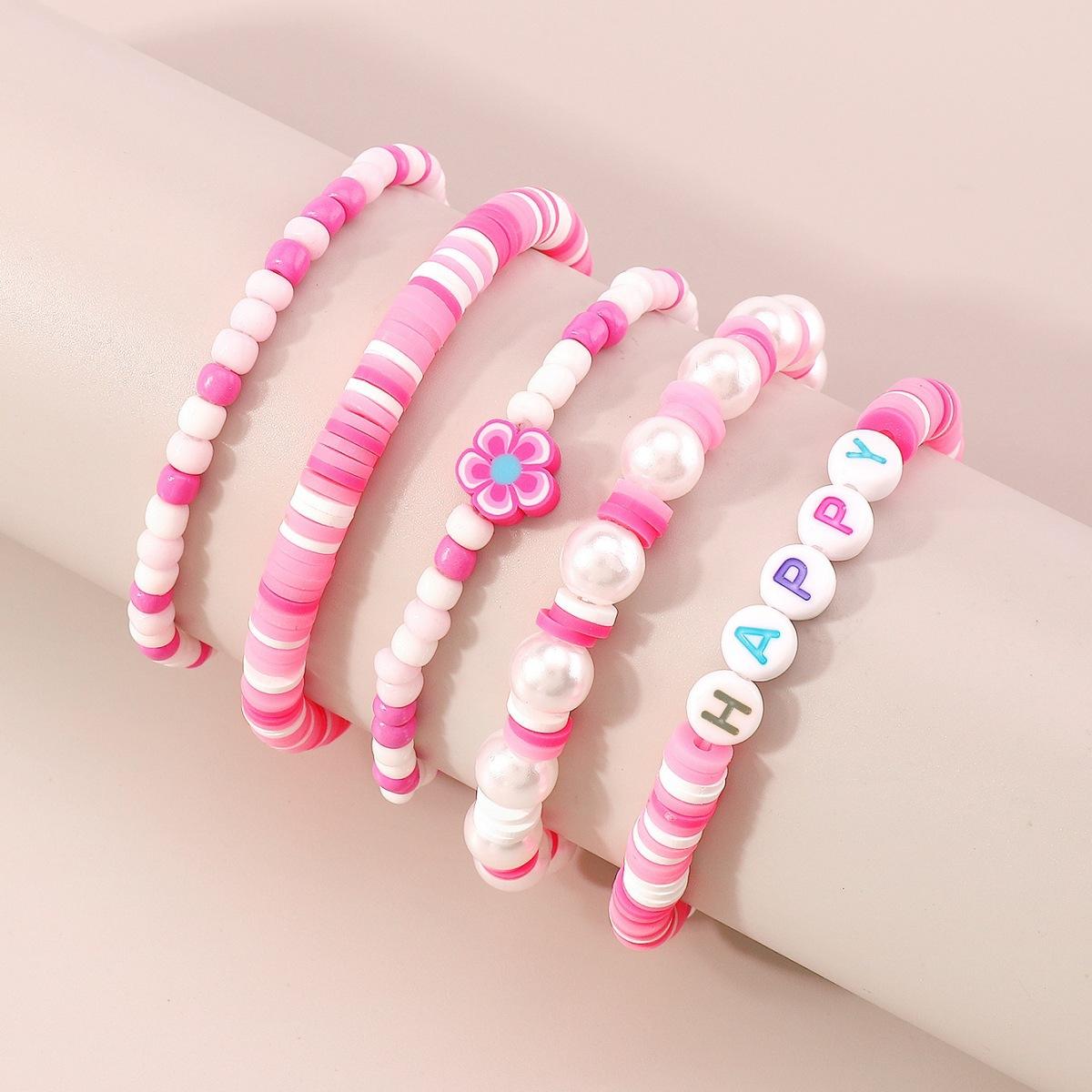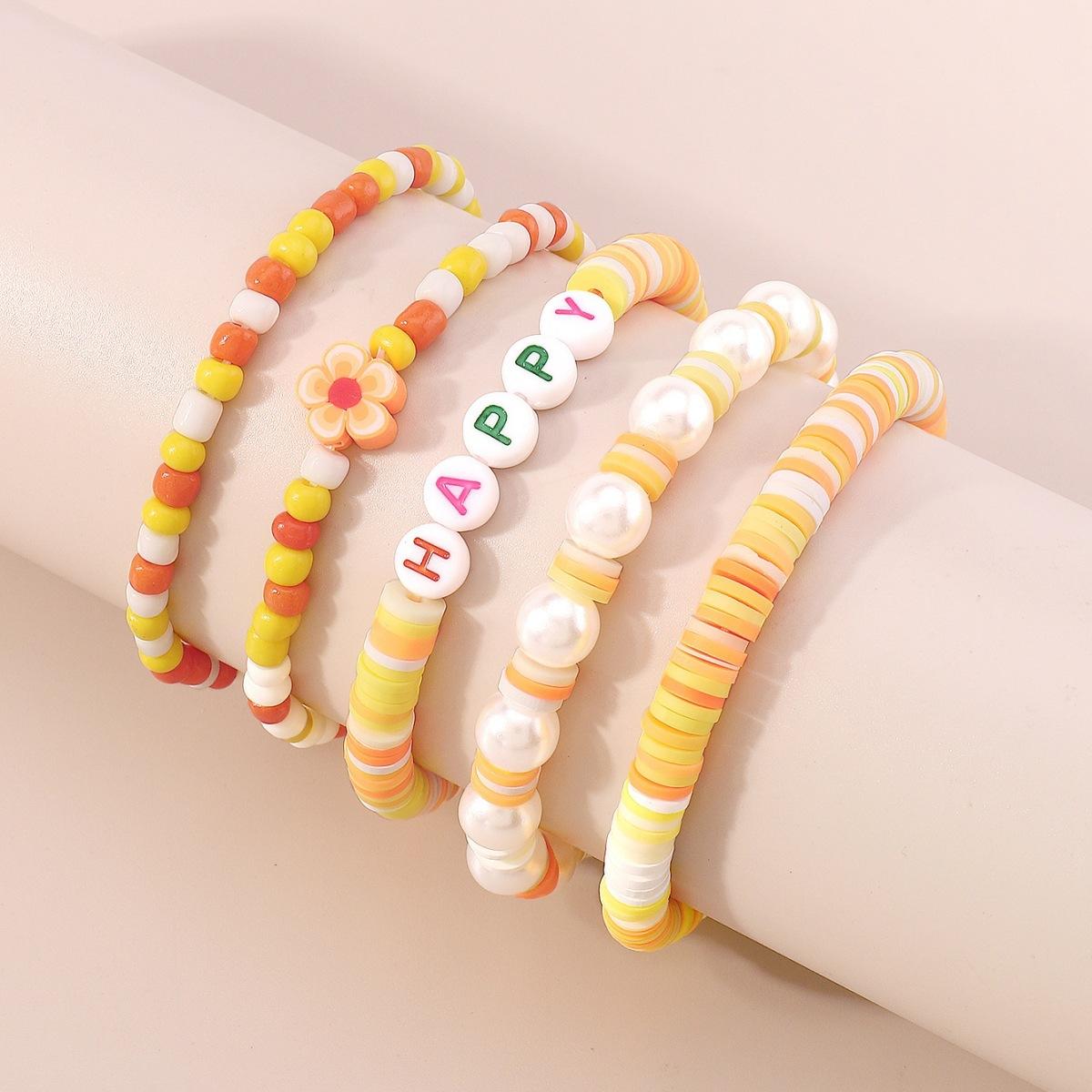 Pulsera de cuentas con letras de cerámica blanda transfronteriza europea y americana, moda personalidad, colorido, traje de pulsera de cuentas de cerámica blanda, venta al por mayor
