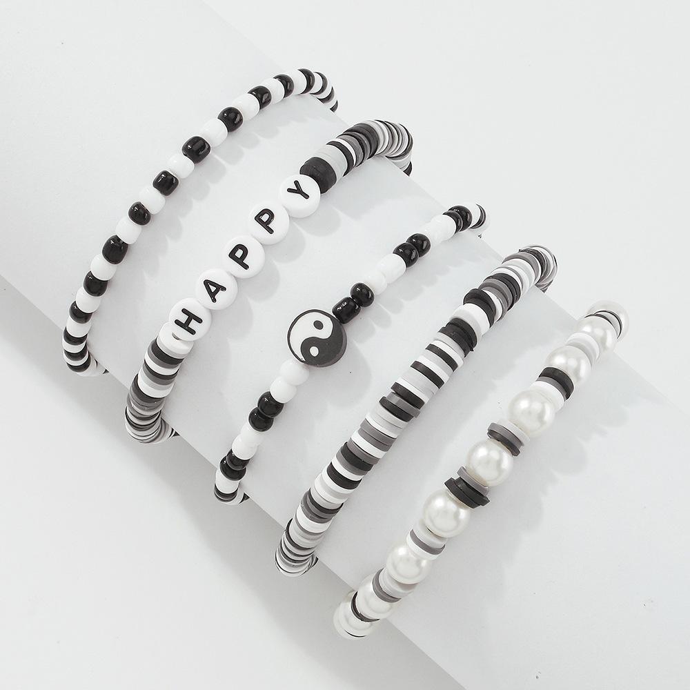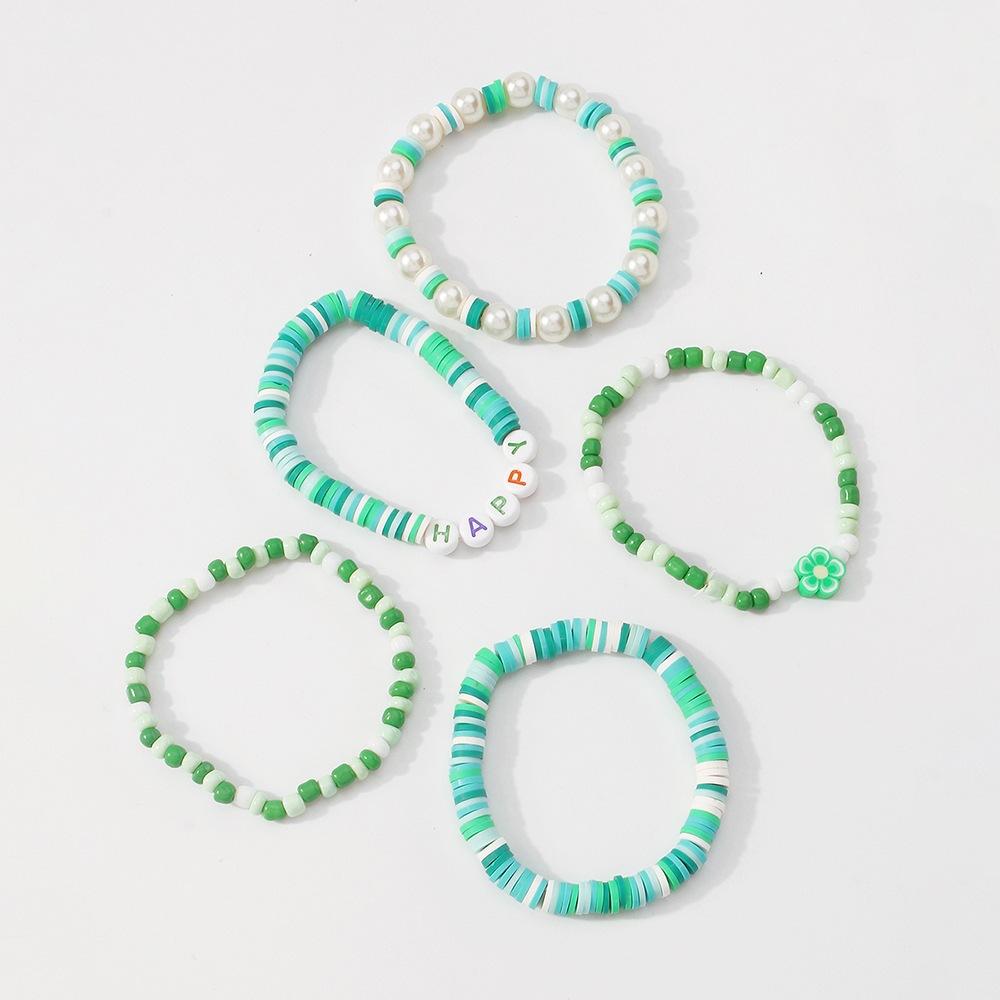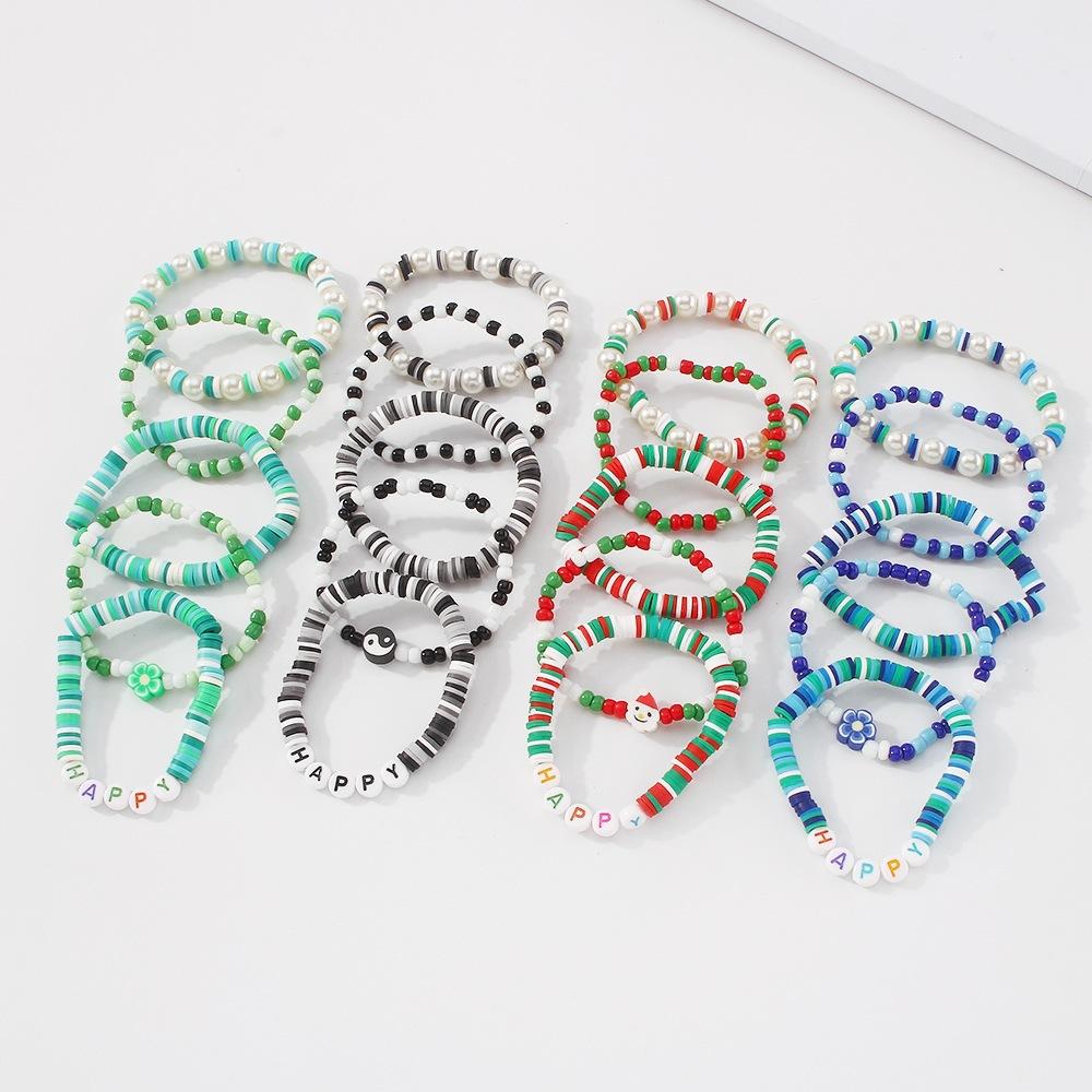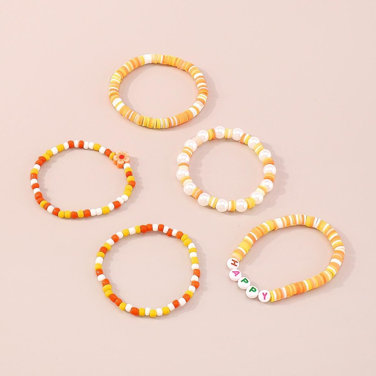 Pulsera de cuentas con letras de cerámica blanda transfronteriza europea y americana, moda personalidad, colorido, traje de pulsera de cuentas de cerámica blanda, venta al por mayor