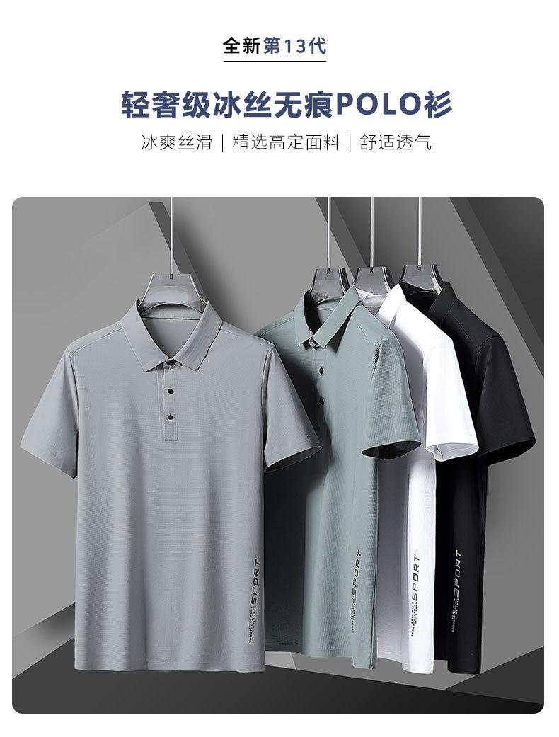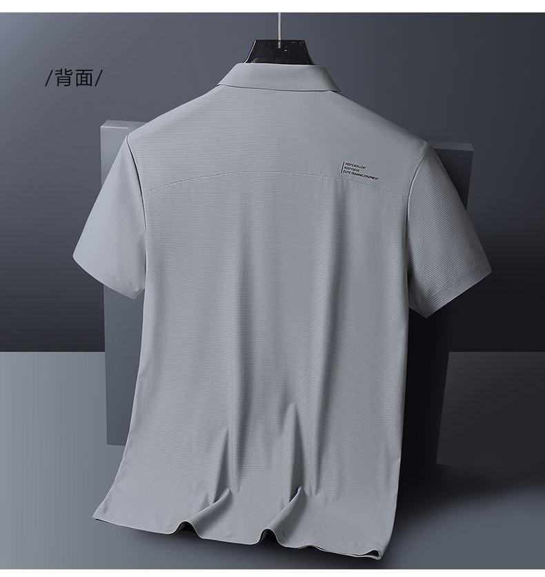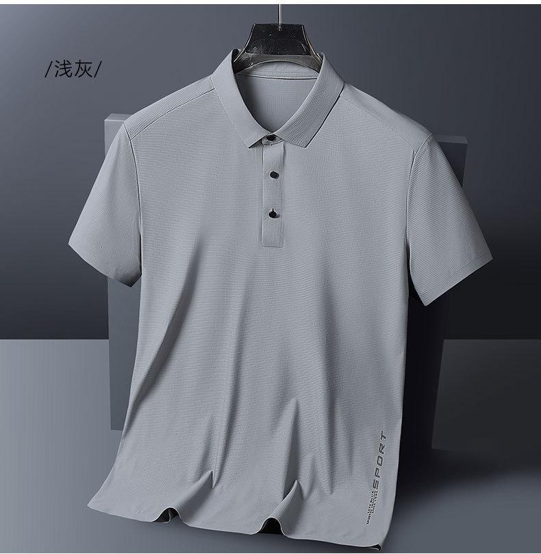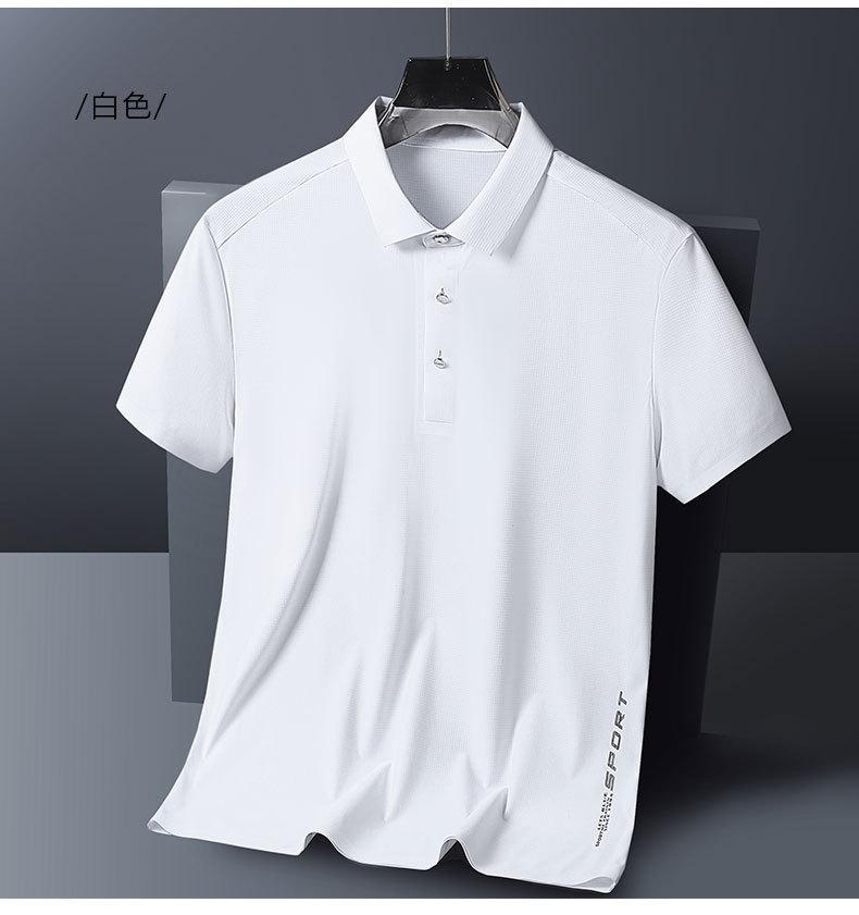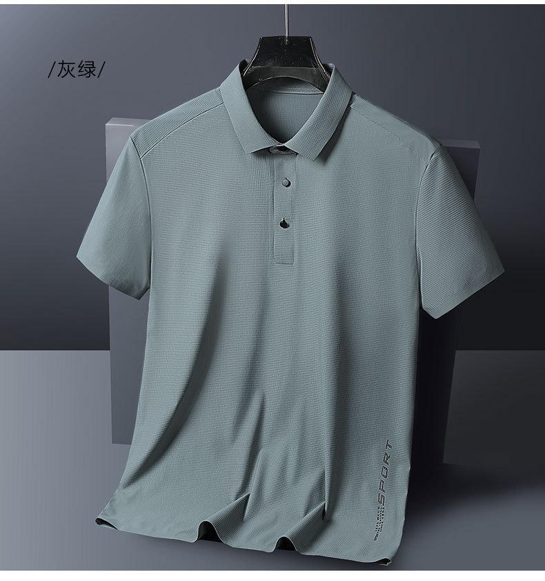 Polo de manga corta de verano para hombre, nueva camiseta de manga corta de color liso con estampado de seda de hielo y media manga.