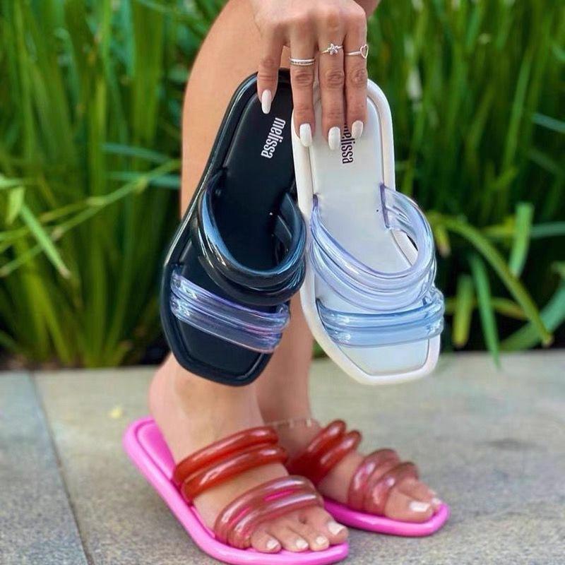 Brasil Meliissa2025 Zapatos Nuevos para Mujer Sandalias Planas de Suela Blanda Pantuflas para Exterior Zapatos de Playa para Vacaciones Junto al Mar