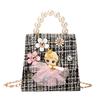 Bolso de otoño e invierno para niños, pequeño bolso cuadrado portátil de perlas, estilo occidental, bandolera para niña, bonito bolso de accesorios para niña
