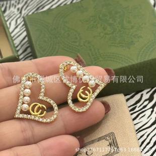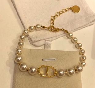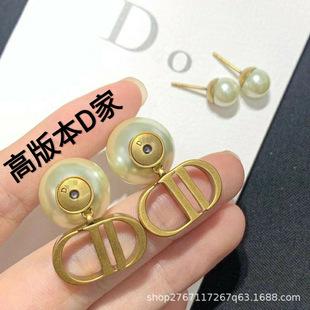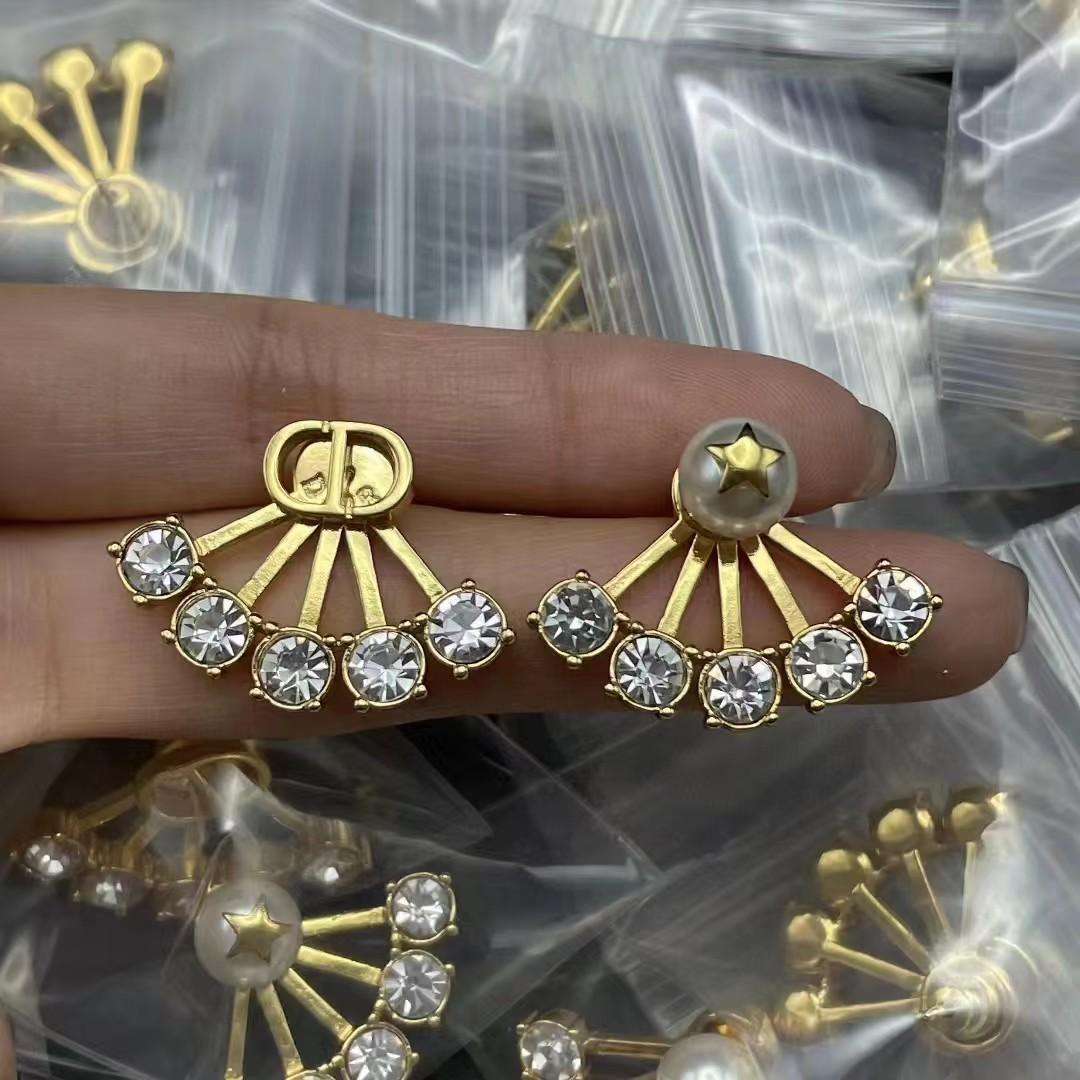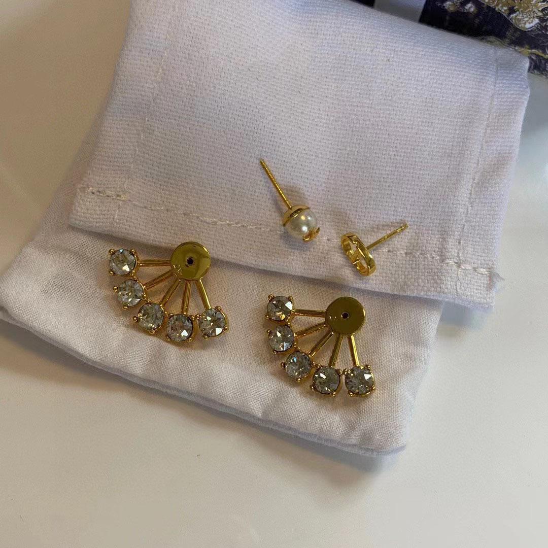 D Home/Di Home Aretes de Pedrería de Perlas con Letra CD Dos Aretes en Forma de Abanico con Borla Colgante Aretes de Sentido Avanzado para el Cabello