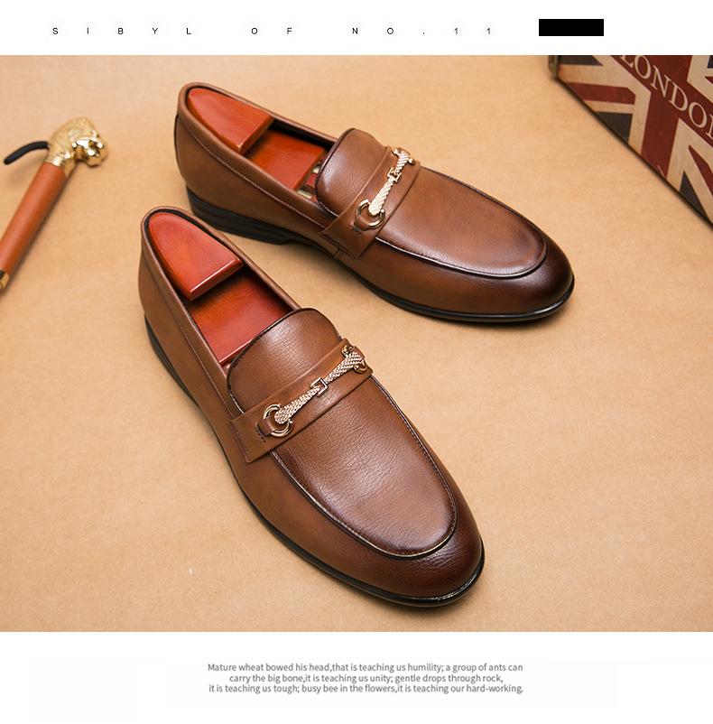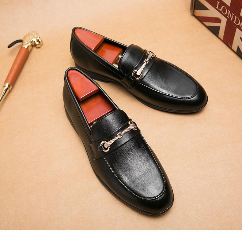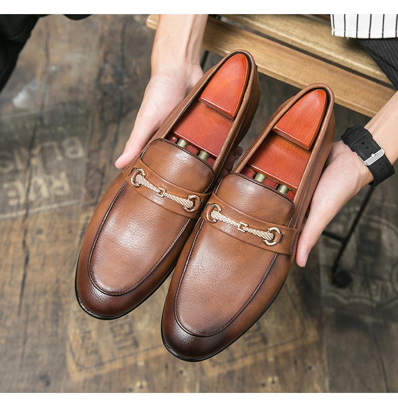 Zapatos de hombre de talla grande transfronterizos, nuevos zapatos de cuero puntiagudos sin cordones de estilo estilista de discoteca británico.