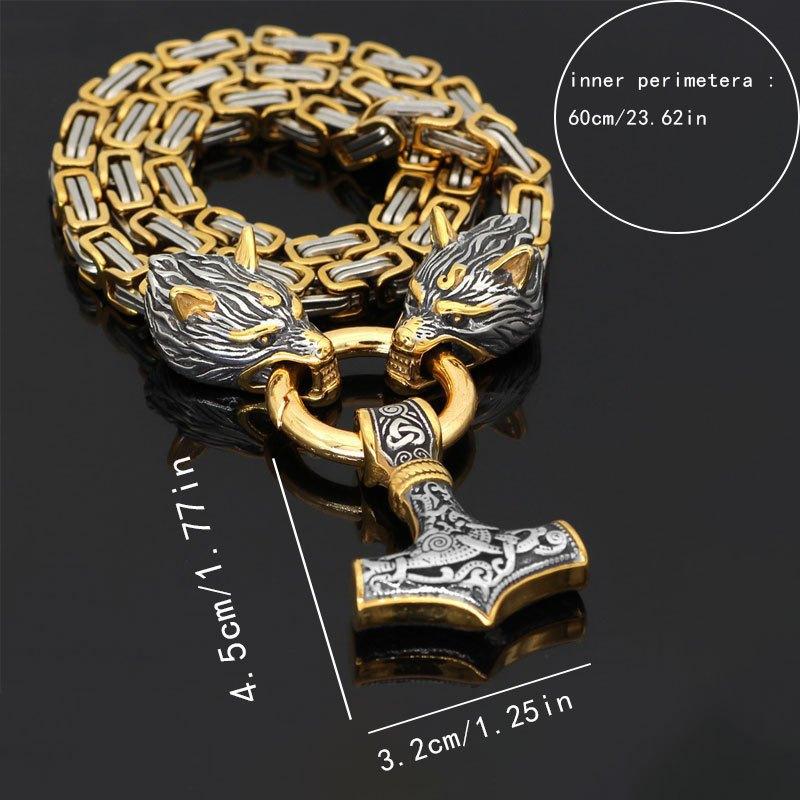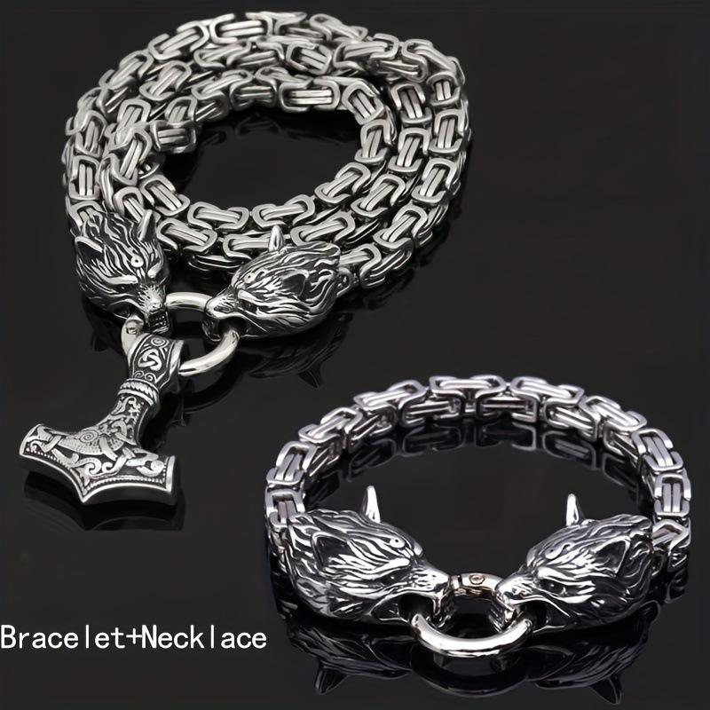Compra 1 juego de collar y pulsera de Thor con cabeza de lobo vikingo vintage, collar con colgante de cadena nórdica, cadena King de acero inoxidable al por mayor en Joom.pro