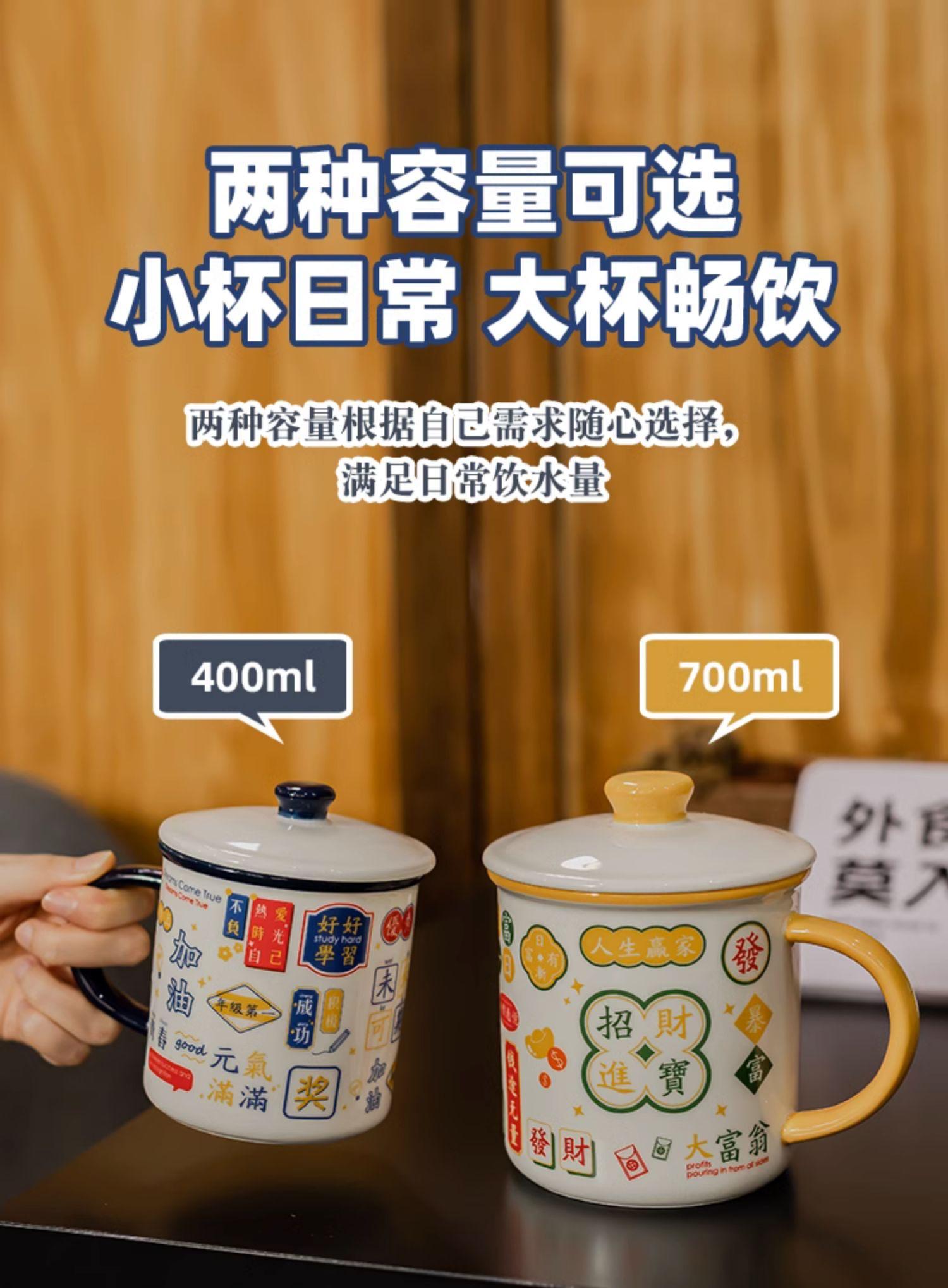 Taza A5L Esmalte Imitación Gran Capacidad Taza para Niñas Oficina Pareja Café Agua con Tapa Tanque de Té Taza de Cerámica