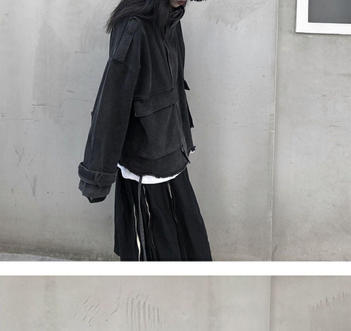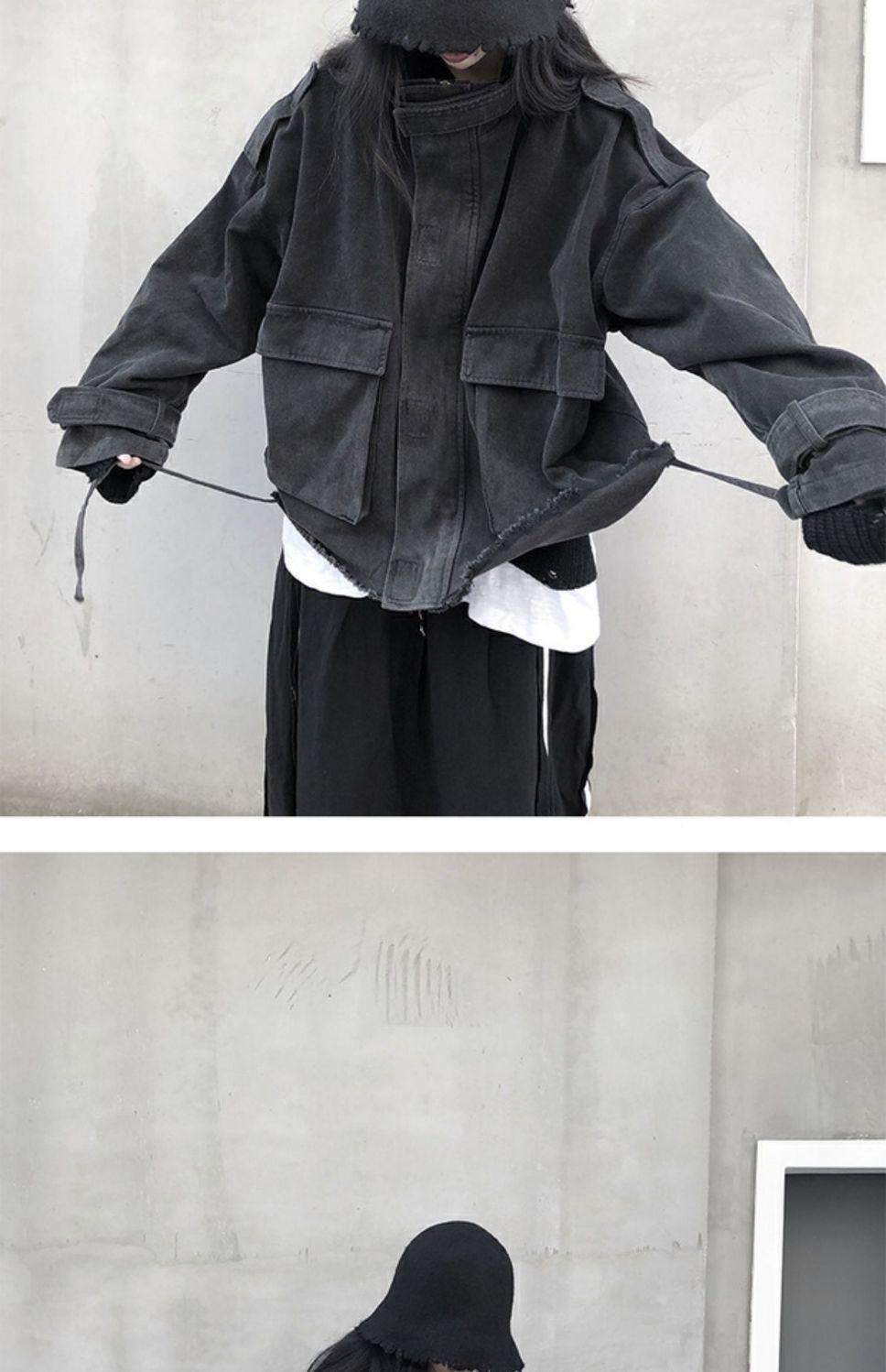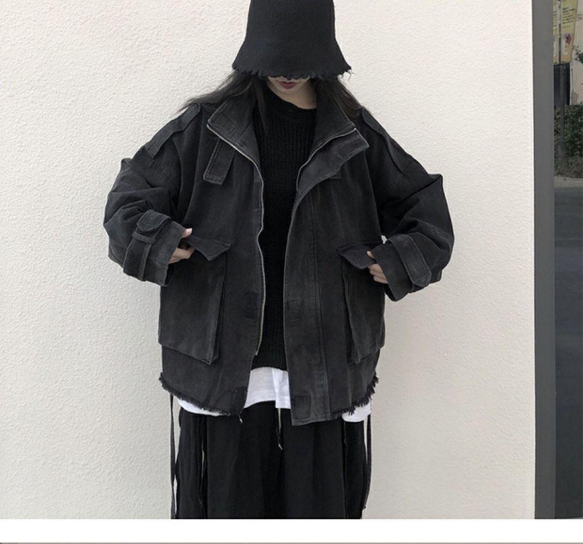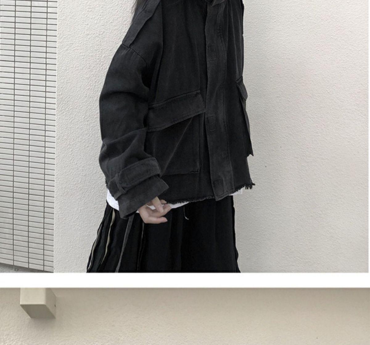 Chaqueta de mezclilla de bolsillo grande 2024 nueva primavera y otoño versátil diseño holgado sentido Yamamoto ropa de trabajo oscura abrigo corto