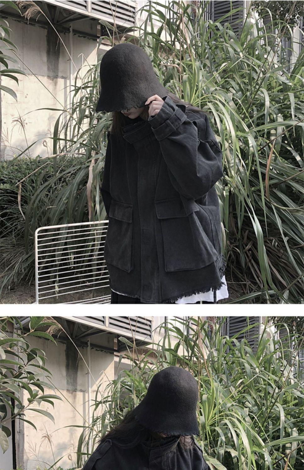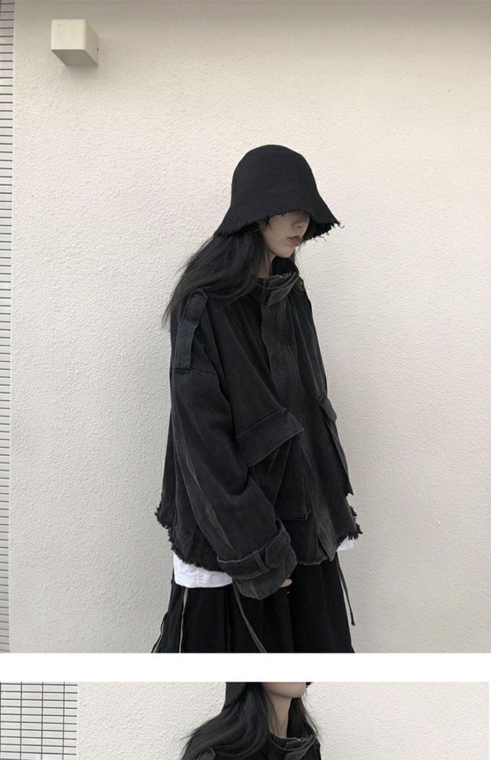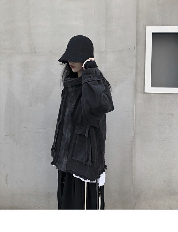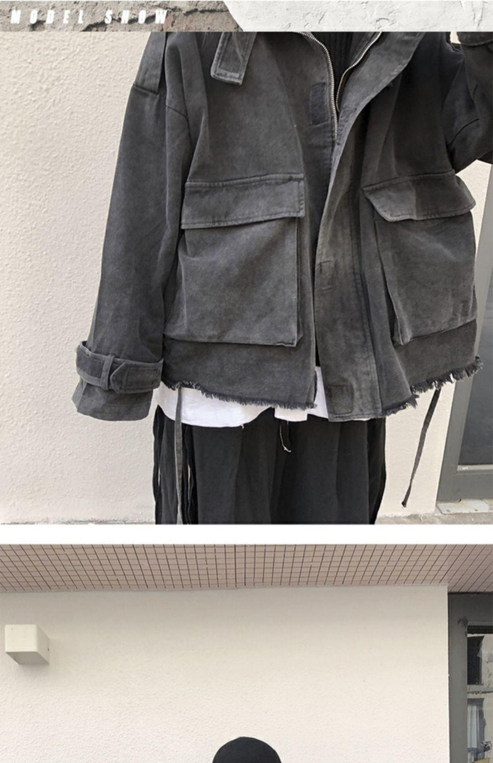Chaqueta de mezclilla de bolsillo grande 2024 nueva primavera y otoño versátil diseño holgado sentido Yamamoto ropa de trabajo oscura abrigo corto