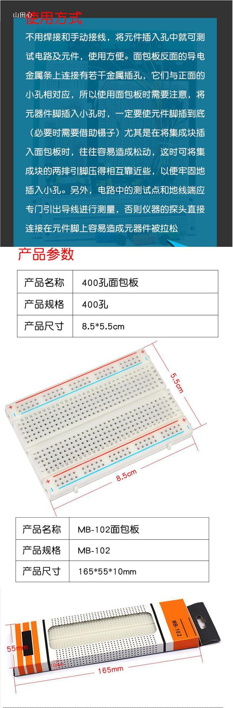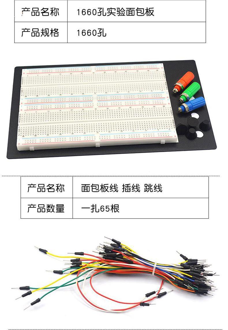 400-hole breadboard 8.5*5.5CM can be combined and spliced 1 piece, MB-102 breadboard 165X55X10MM 1 piece, 1660...