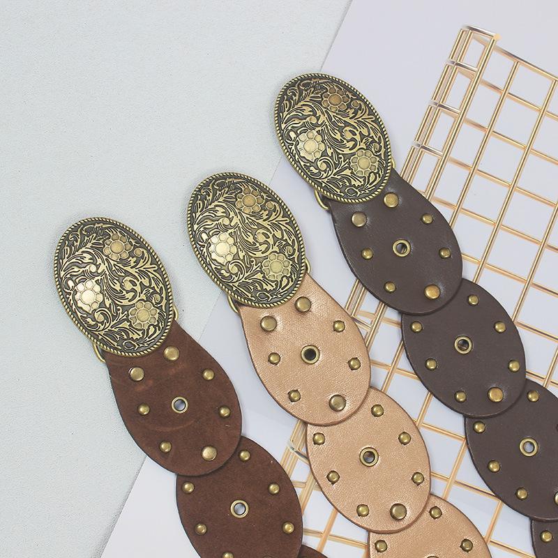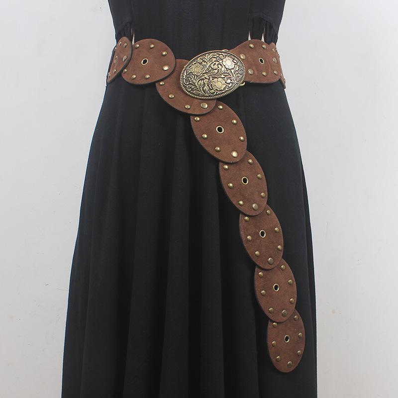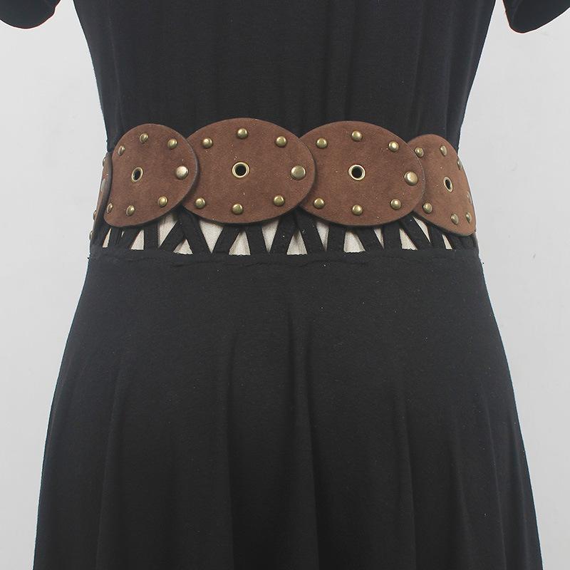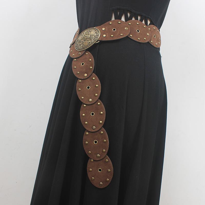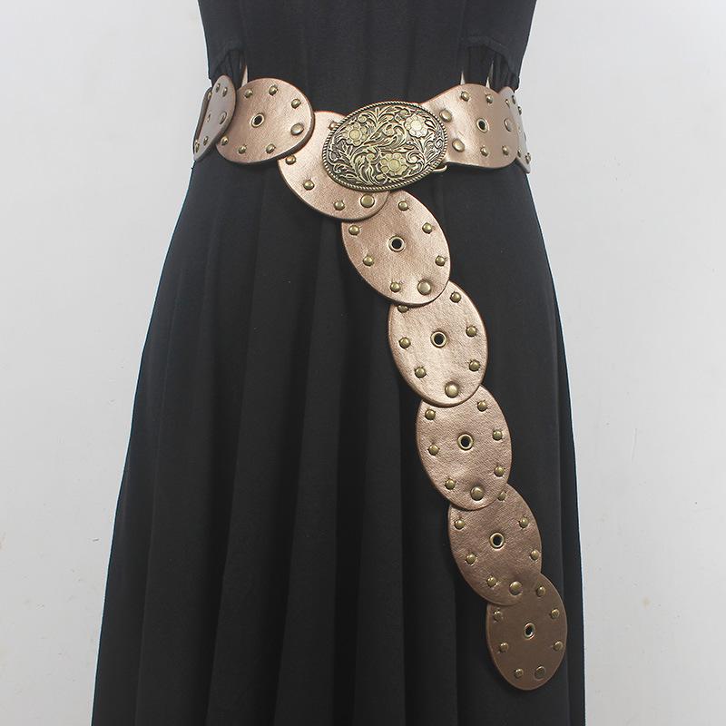 Cinturón con remaches y costuras de disco, estilo chic europeo y americano, para mujer, estilo antiguo vintage, personalizado, combina con todo.