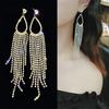 Pendientes de borla con incrustaciones de diamantes y circonitas de aguja de plata s925, pendientes largos con personalidad de diseño europeo y americano, pendientes de temperamento exagerado.