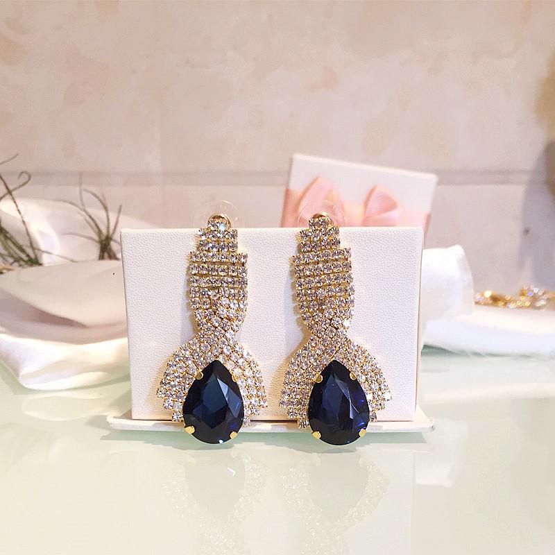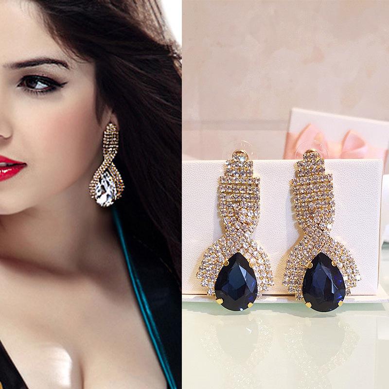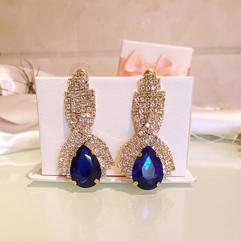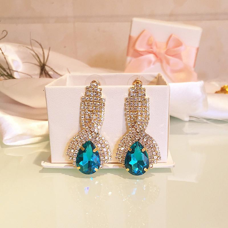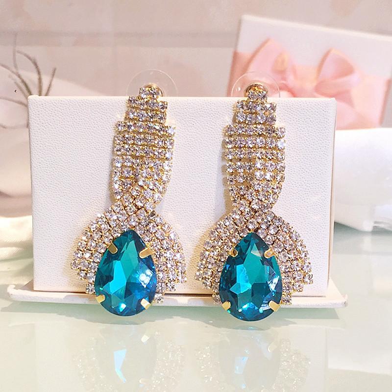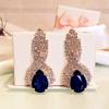 Pendientes de diamantes exagerados europeos y americanos para mujer, pendientes de cristal con gemas y gotas de agua largas vintage, pendientes distintivos, pendientes para mujer