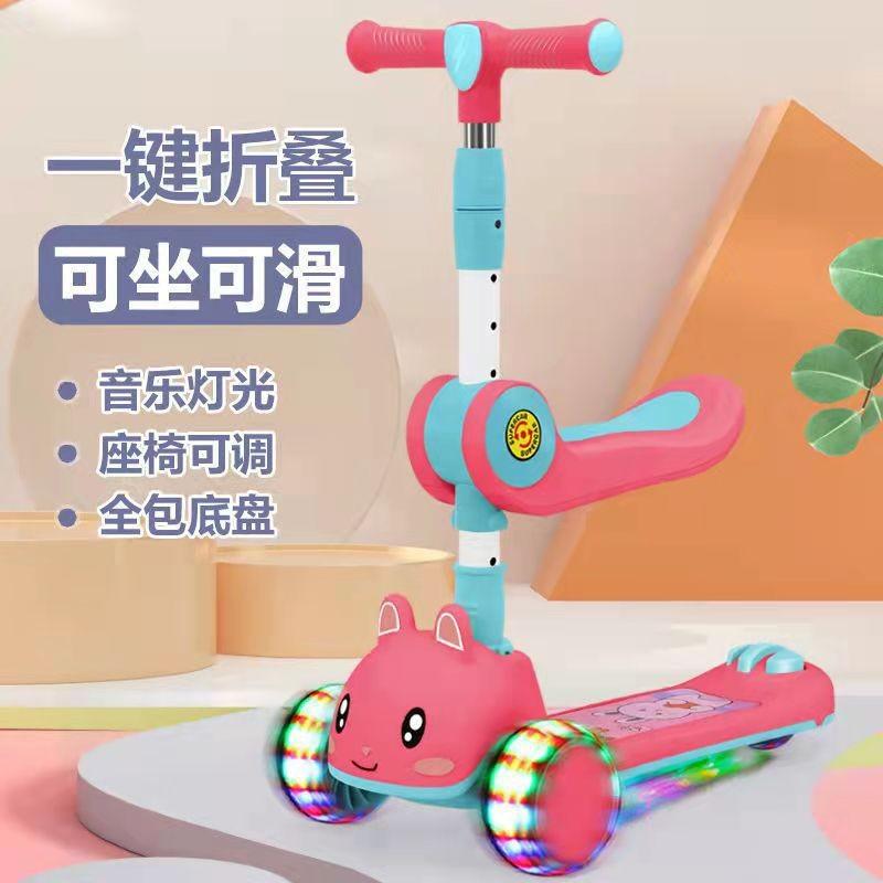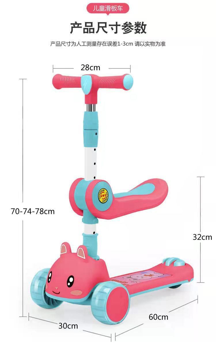 Patinete infantil Baby Scooter tres en uno de 2 a 8 años con luz musical y asiento plegable con un botón
