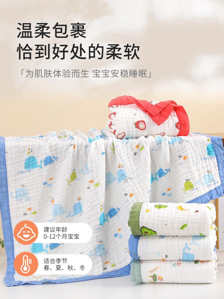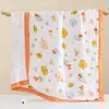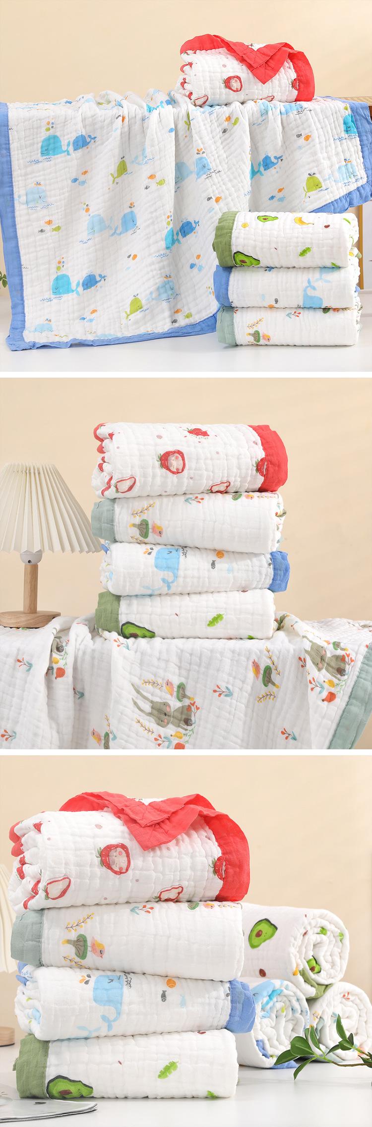 Toalla de baño de gasa para bebé, bolsa de seis capas para recién nacidos, con borde estampado, suave y absorbente