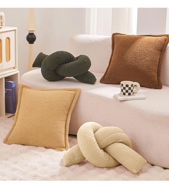 Knotted-beige, Knotted-Brown, Knotted-beige, Knotted light-khaki, Knotted-Army Green, Teddy velvet pillow-beig...