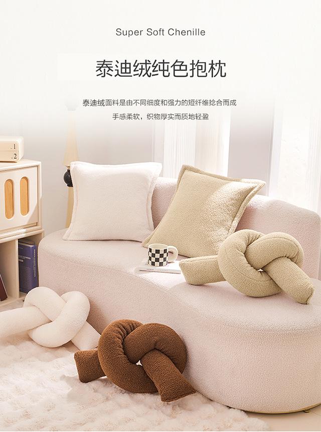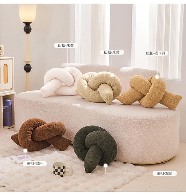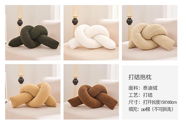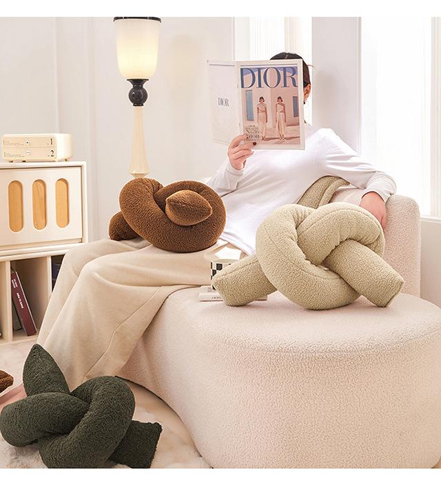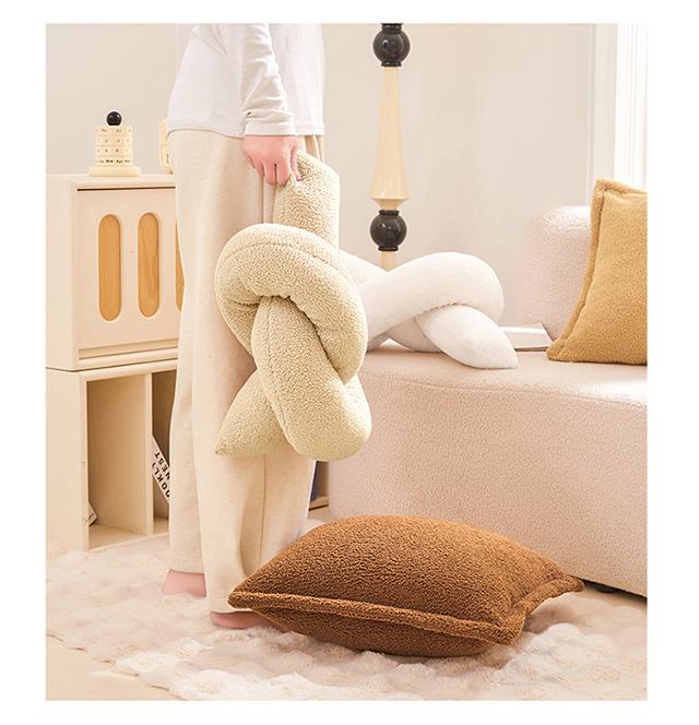 Almohada Estilo Ins de Celebridad de Internet Felpa Linda Almohada Larga Tira Trenzada Sala de Estar Sofá Cojín Almohada Anudada