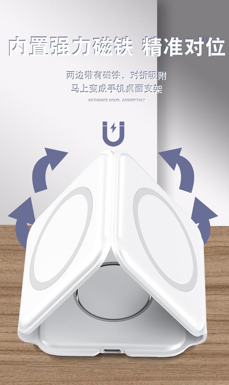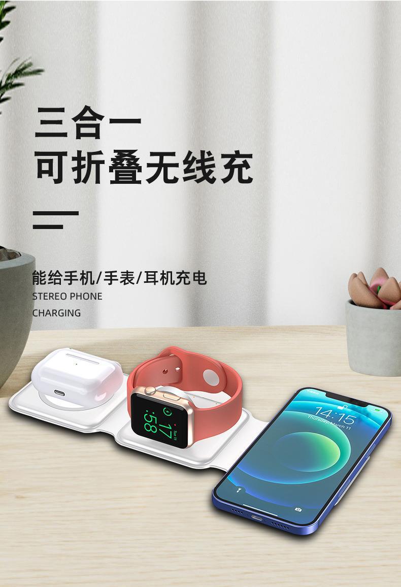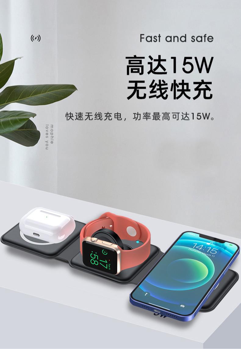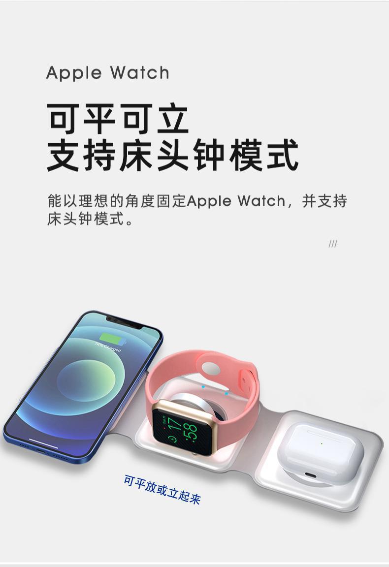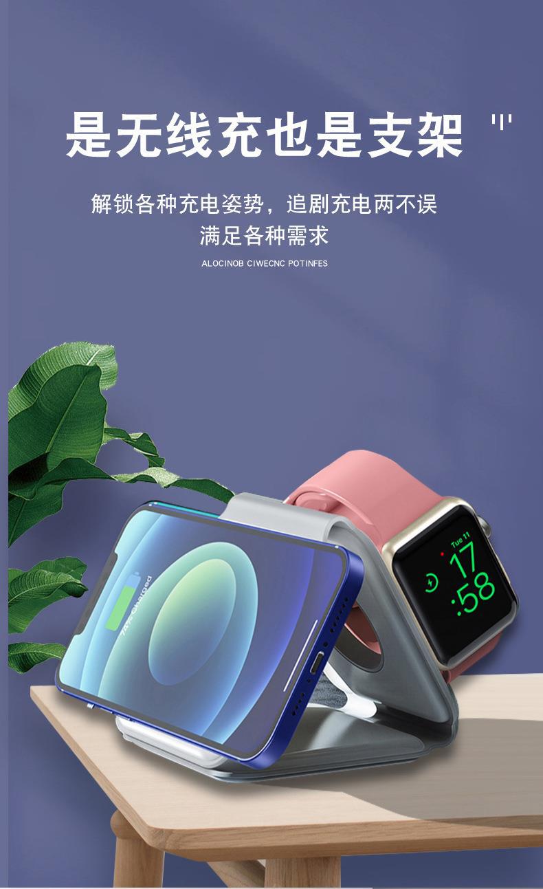 Cargador Inalámbrico Magnético Multifuncional 3 en 1 de 15W para Teléfonos Móviles, Audífonos y Relojes con Pantalla Digital Inteligente