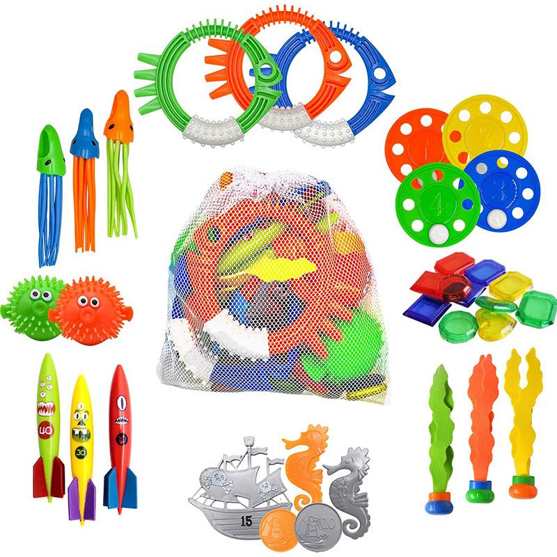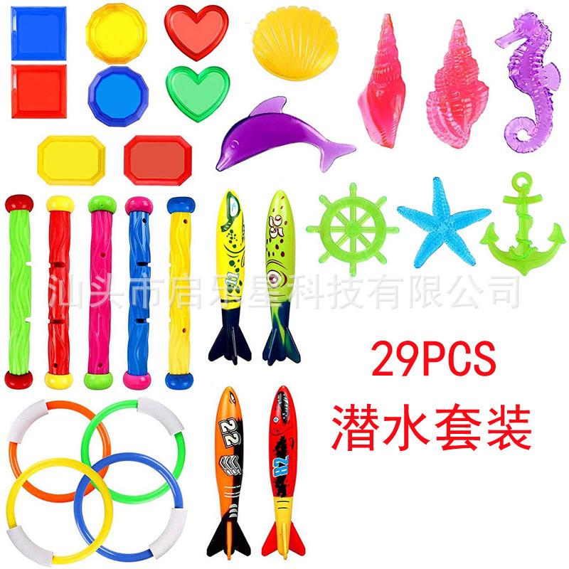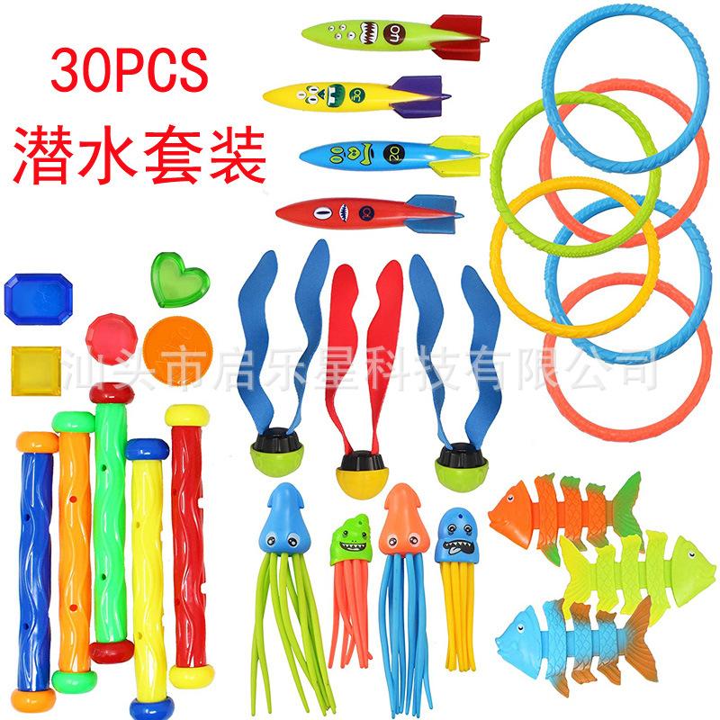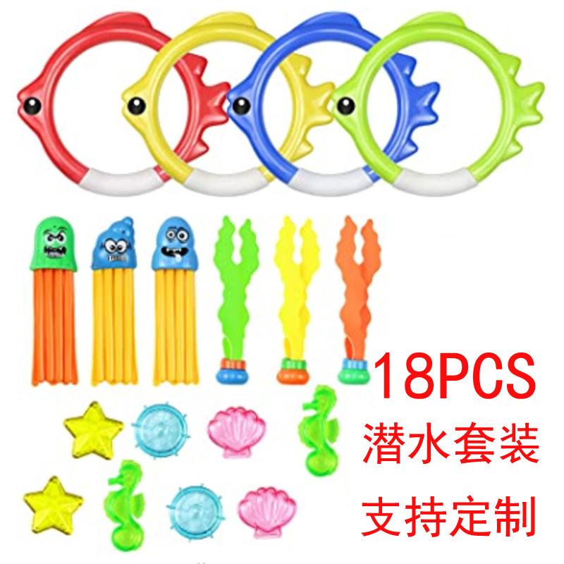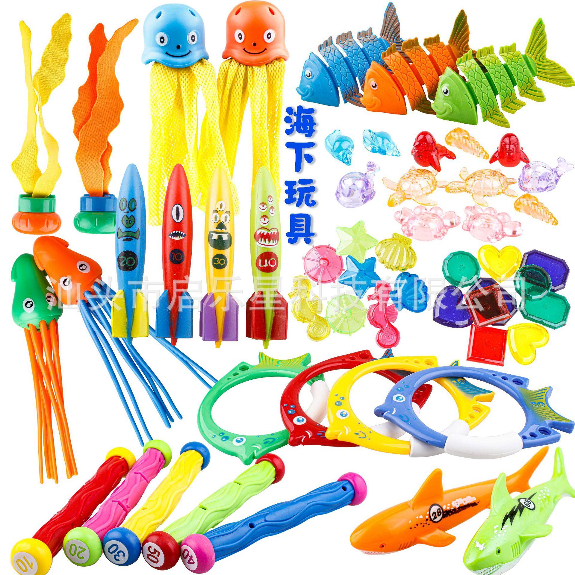 Traje de juego de buceo de verano para niños transfronterizo, agua de piscina, torpedo, palo de buceo, juguete de anillo de pez tiburón en stock