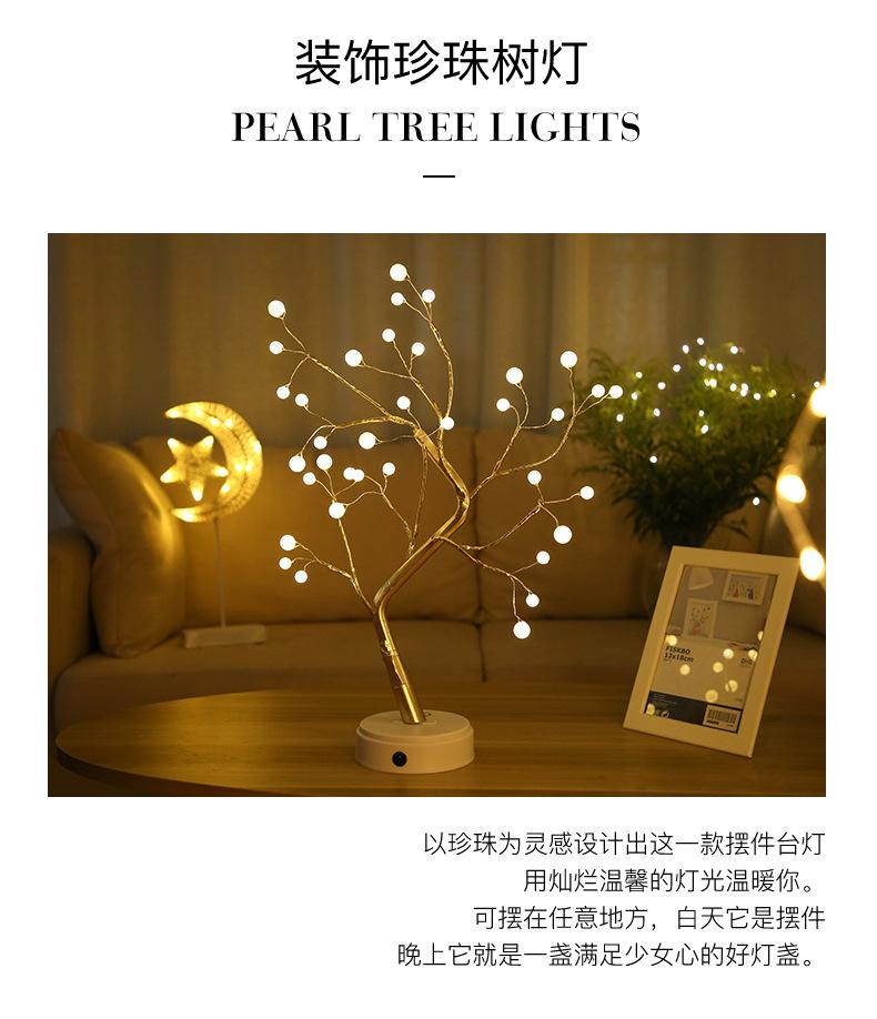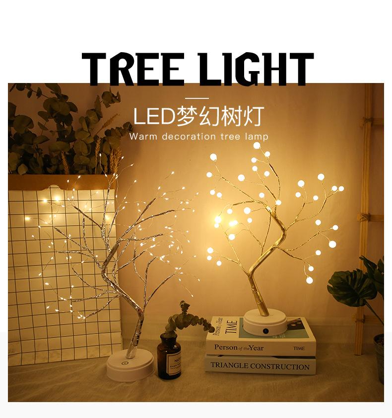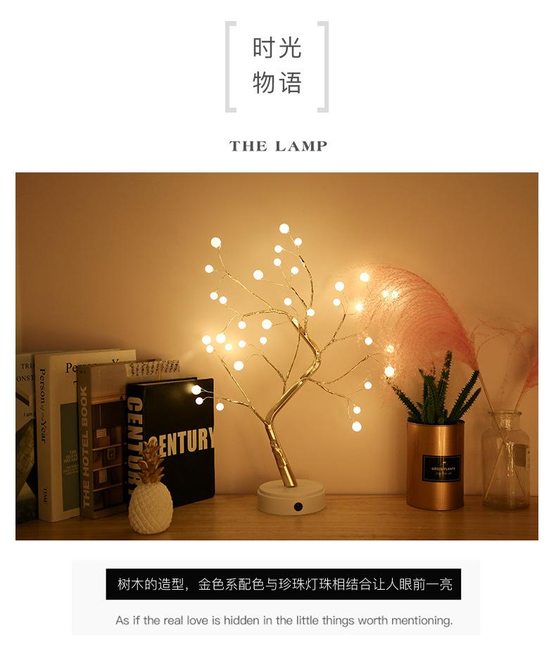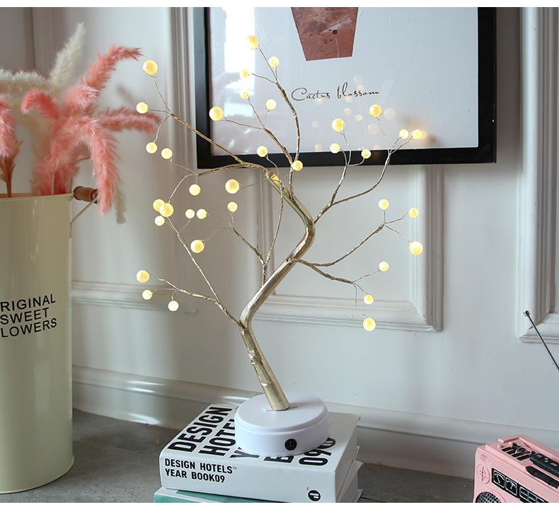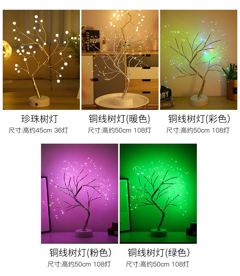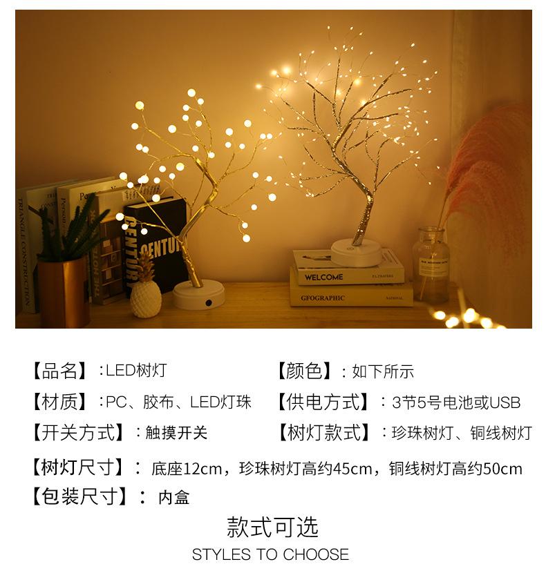 Lámpara de árbol de perlas con alambre de cobre LED transfronterizo, lámpara de exhibición interior, lámpara de decoración del hogar, regalo de cumpleaños, escena navideña