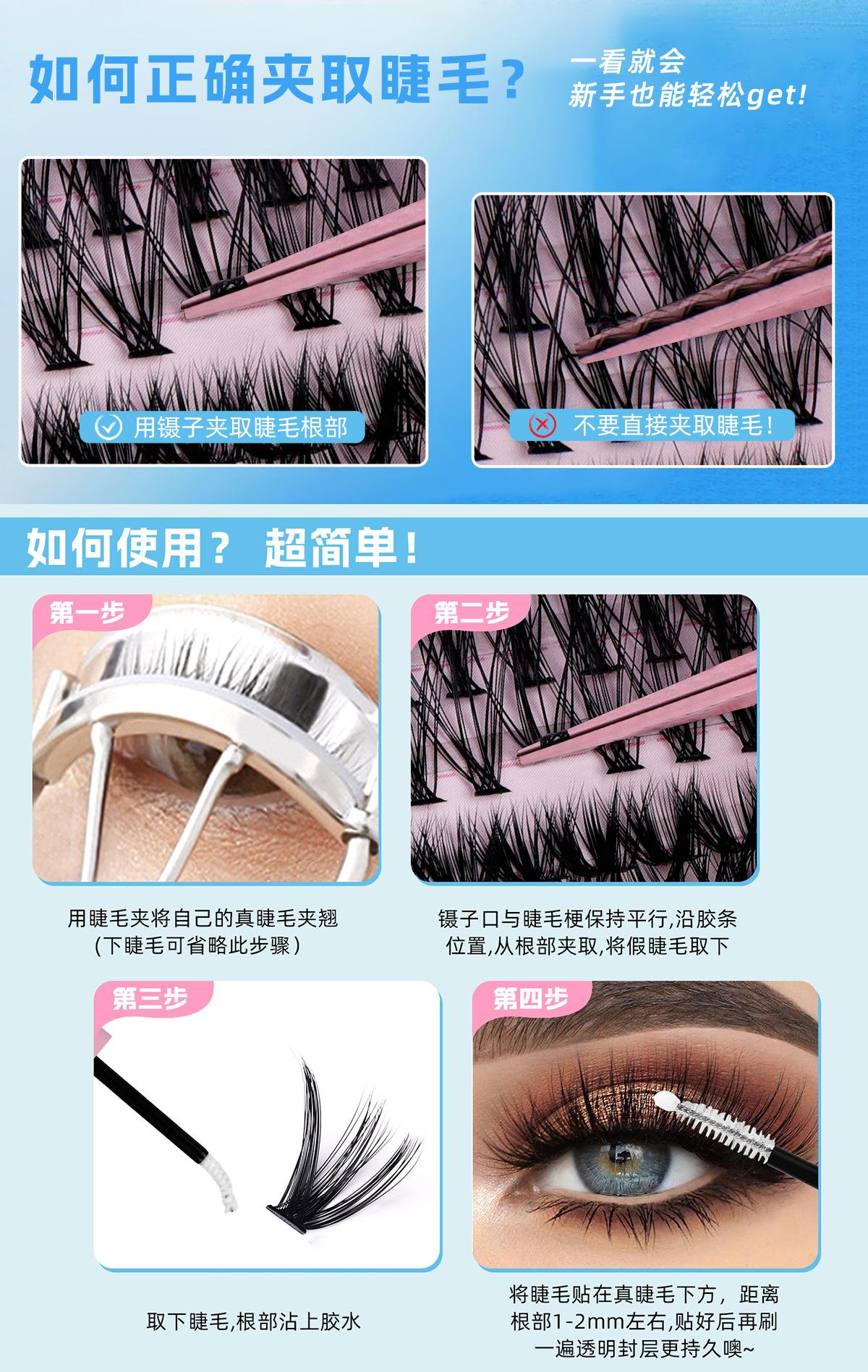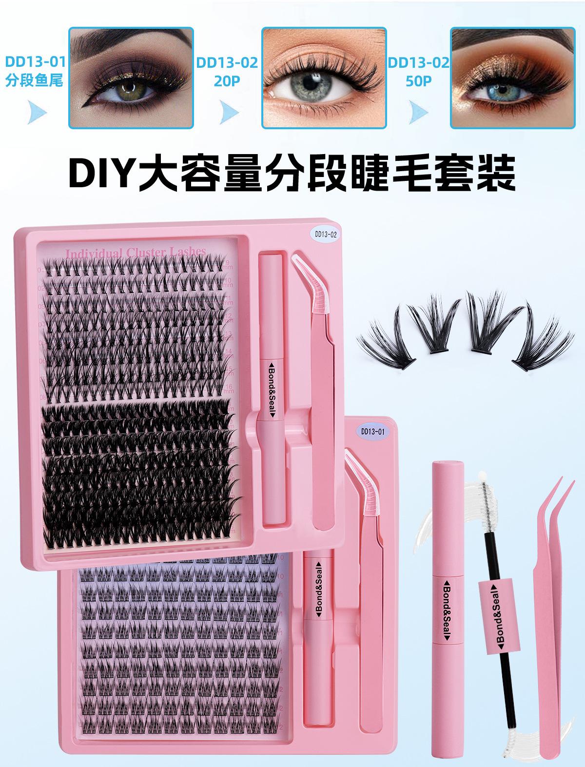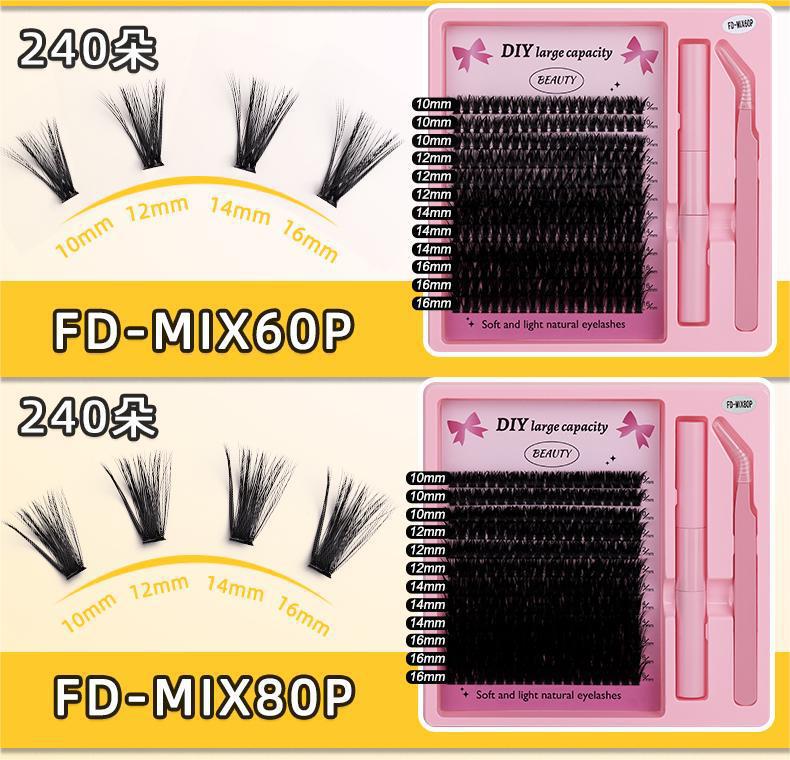 Caja de juego de pestañas postizas segmentadas transfronterizas cabello de fusión en caliente Europa y Estados Unidos pestañas postizas gruesas 80PDIY injerto de pestañas caja de juego FD