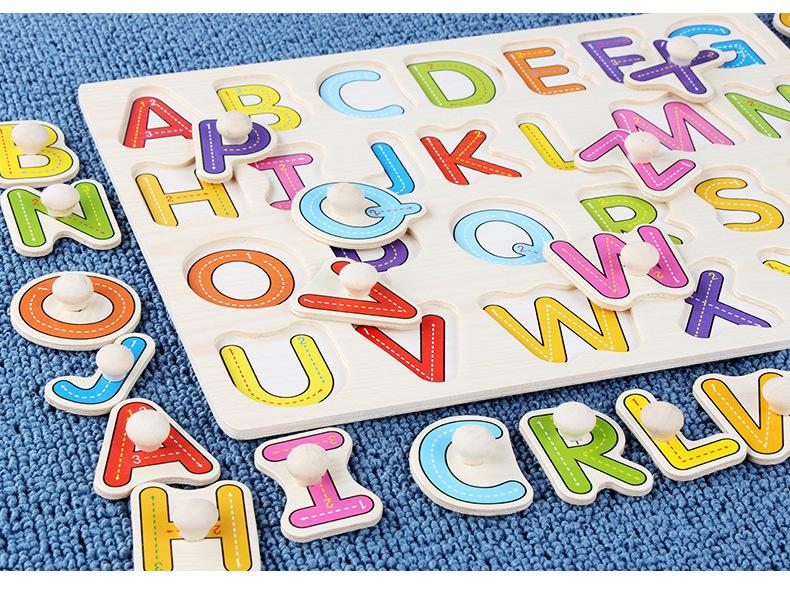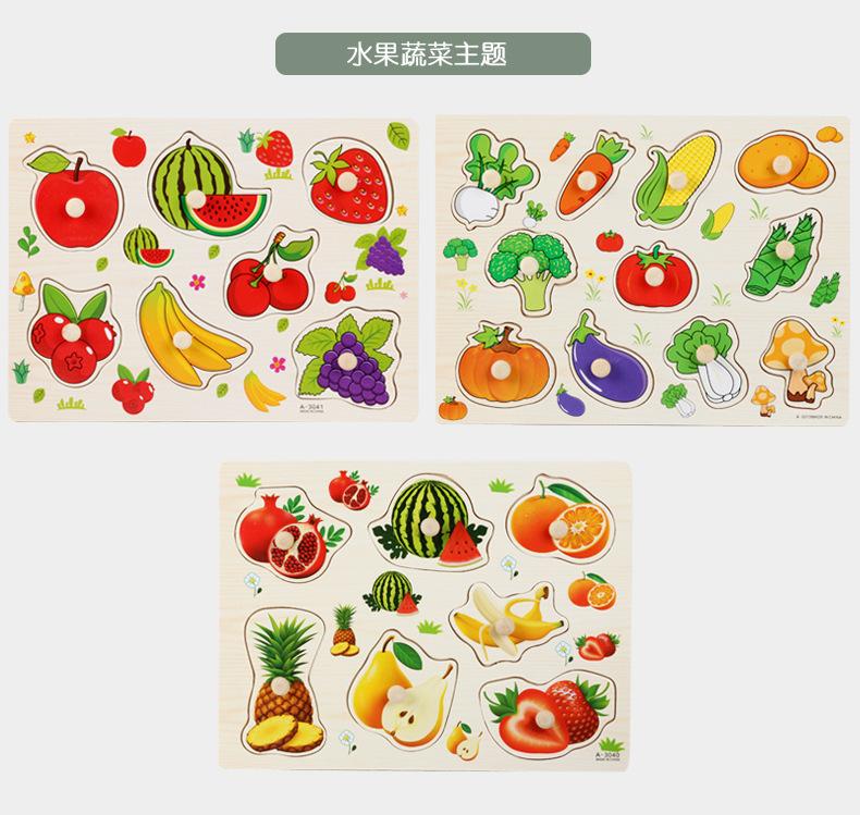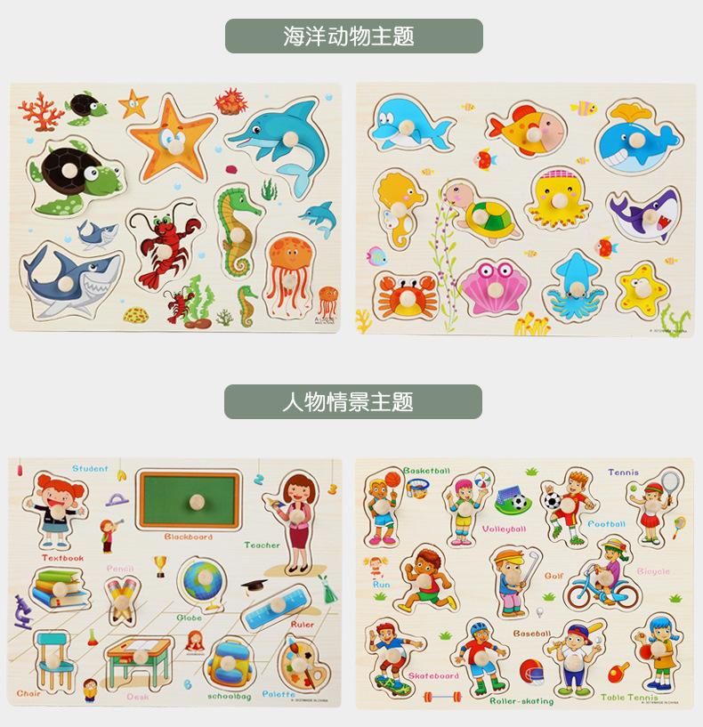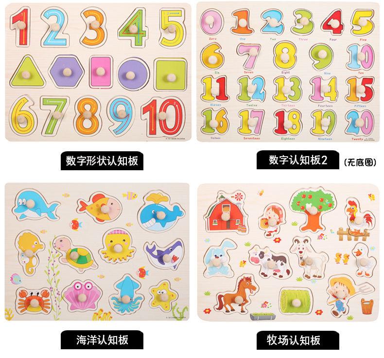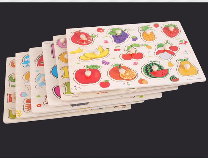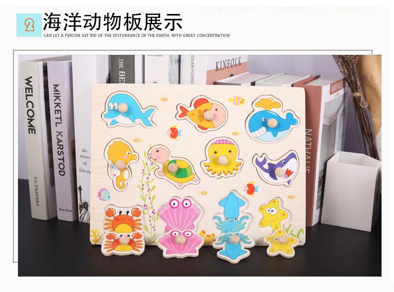 Rompecabezas educativo de educación temprana para niños, con letras digitales de animales marinos y frutas, rompecabezas de mano para bebés de 3 a 4 años, juguetes de madera.