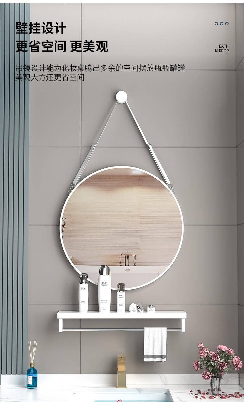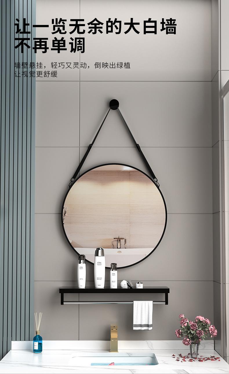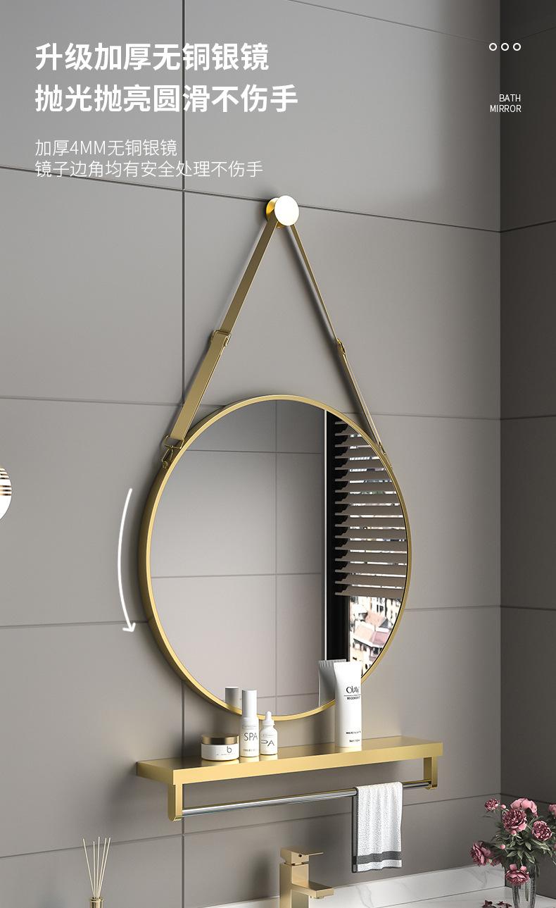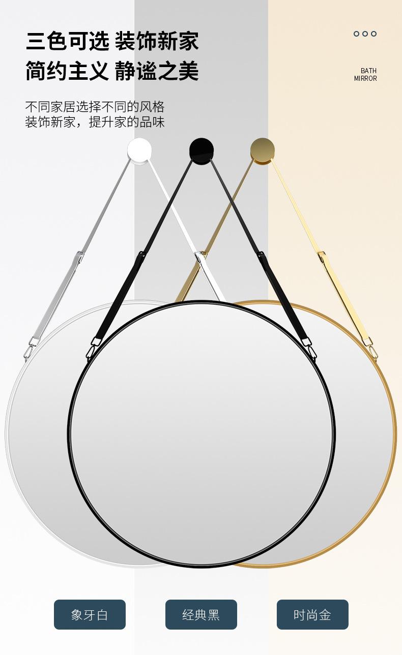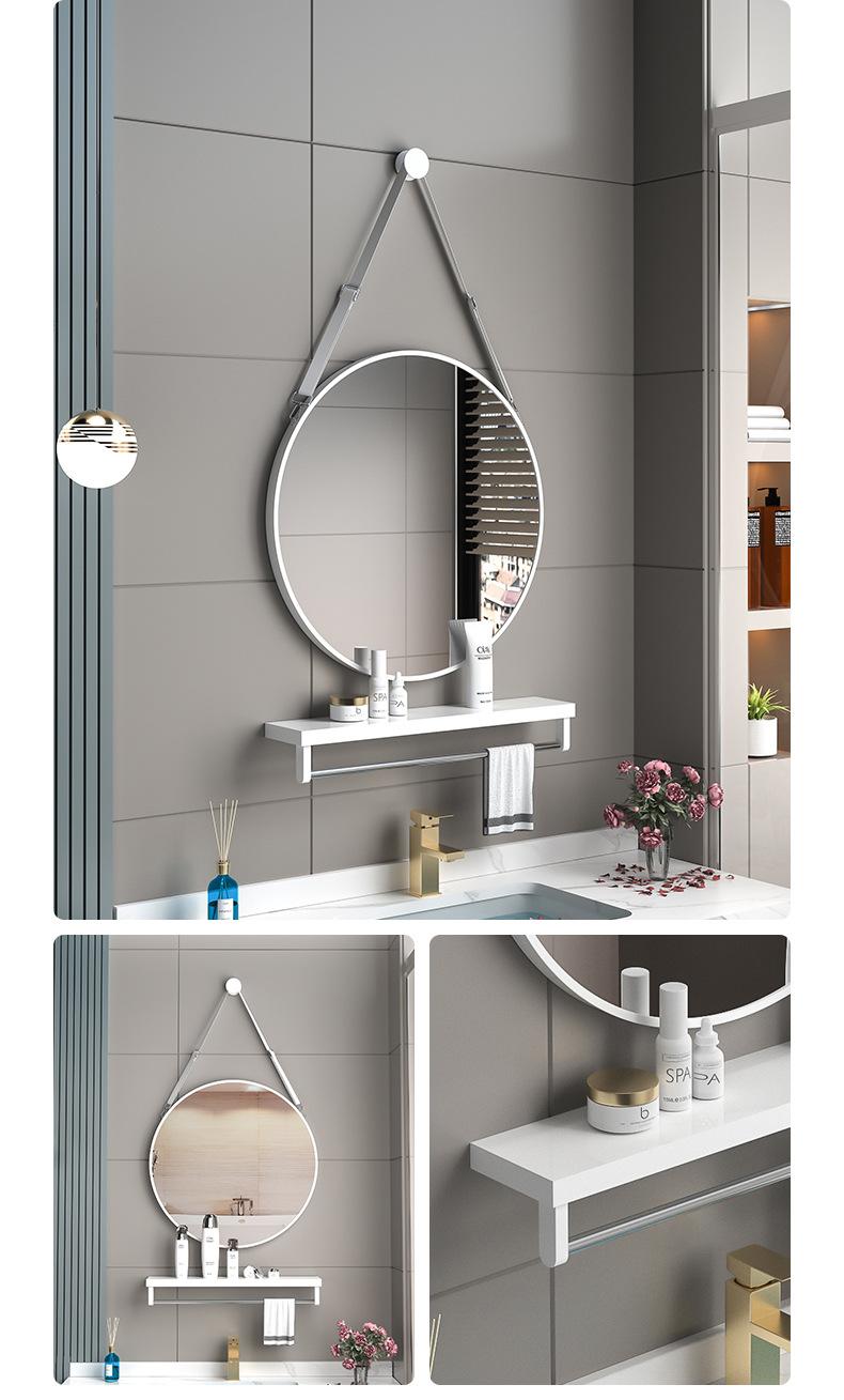 Espejo nórdico redondo colgante, espejo cosmético de baño de pared, espejo de baño sin perforaciones, espejo de inodoro de pared.