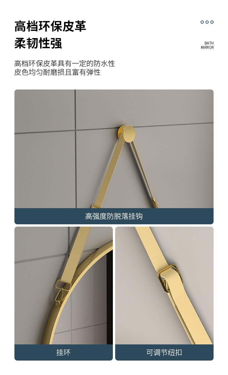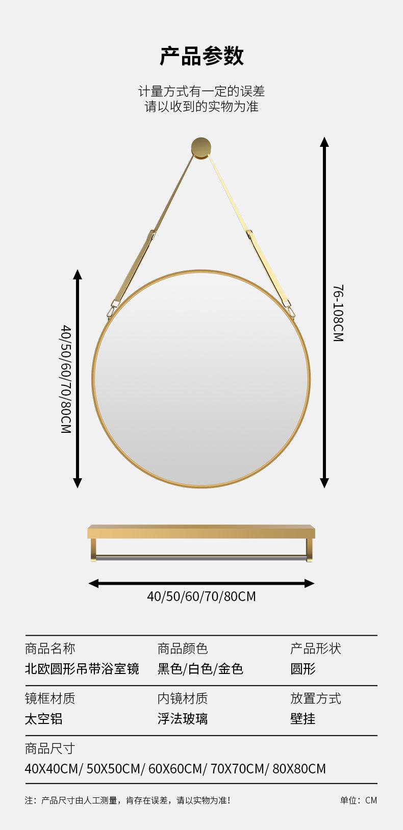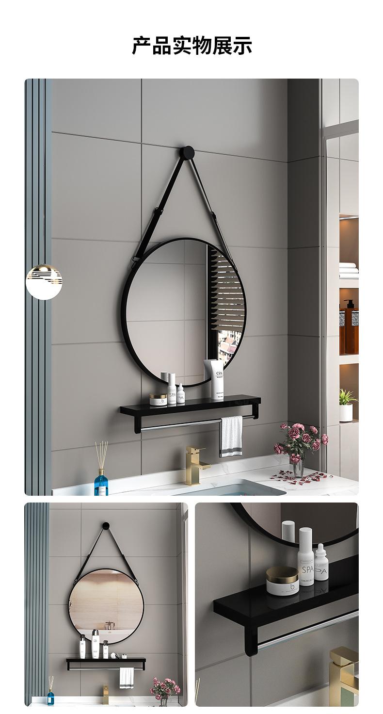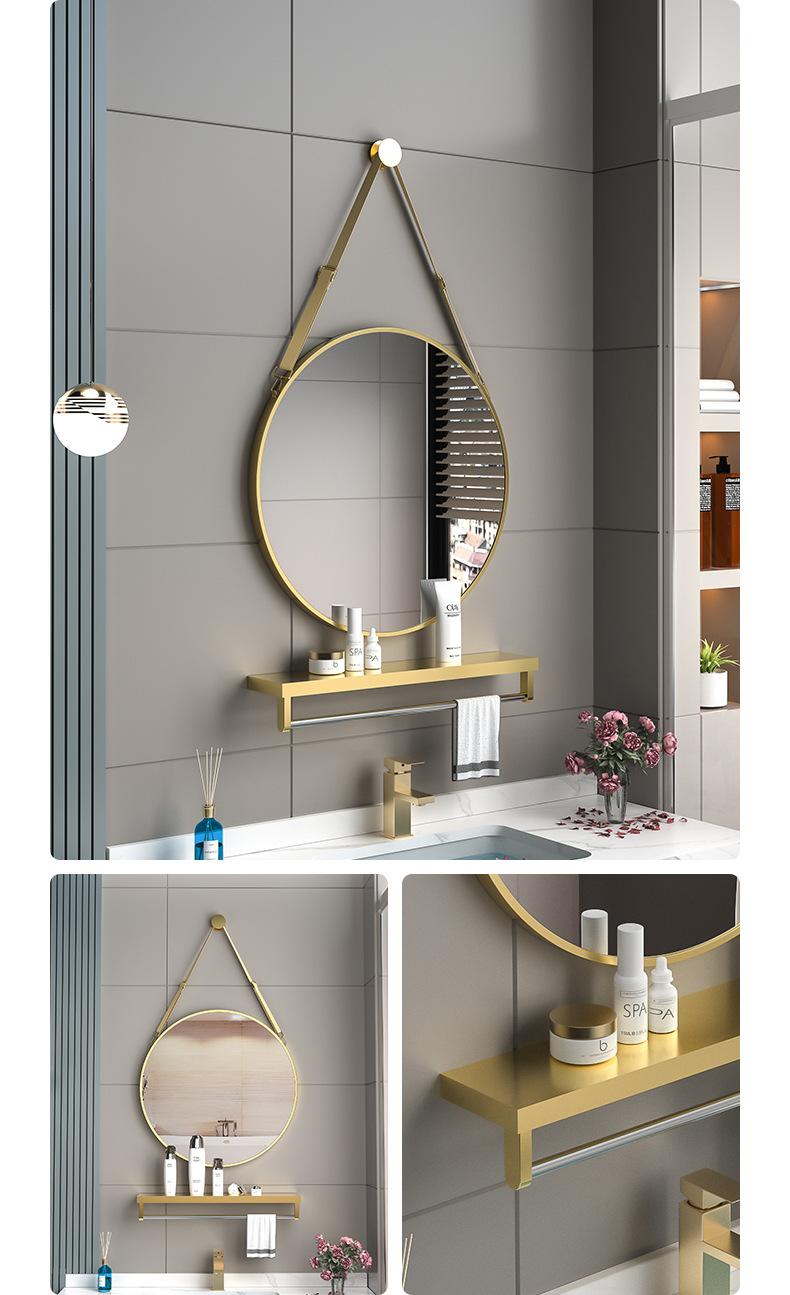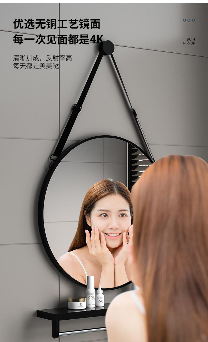 Espejo nórdico redondo colgante, espejo cosmético de baño de pared, espejo de baño sin perforaciones, espejo de inodoro de pared.